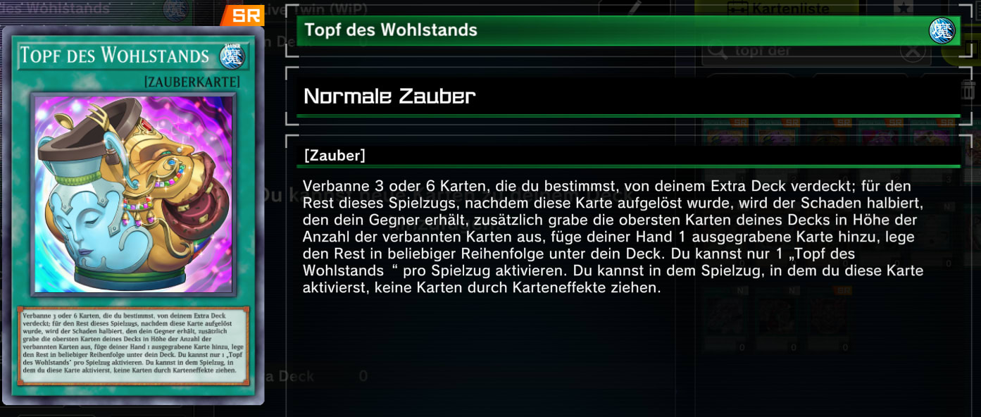 Beide kommen hier natürlich mit zusätzlichen Kosten. Begierden verbannt zehn Karten aus eurem Deck, Wohlstand verbannt Karten aus dem Extra-Deck, die ihr selbst wählen könnt.