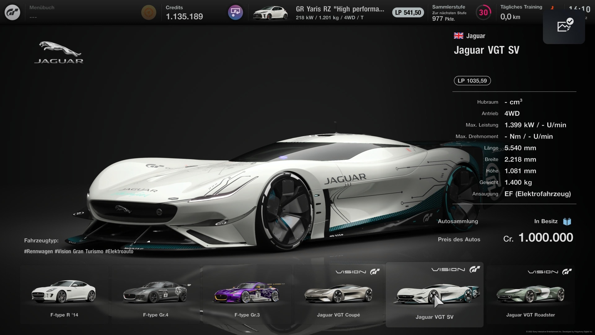 Jaguar VGT Coupé er tilgængelig direkte fra producenten i GT7 Brand Central. Coupéen koster en million credits.