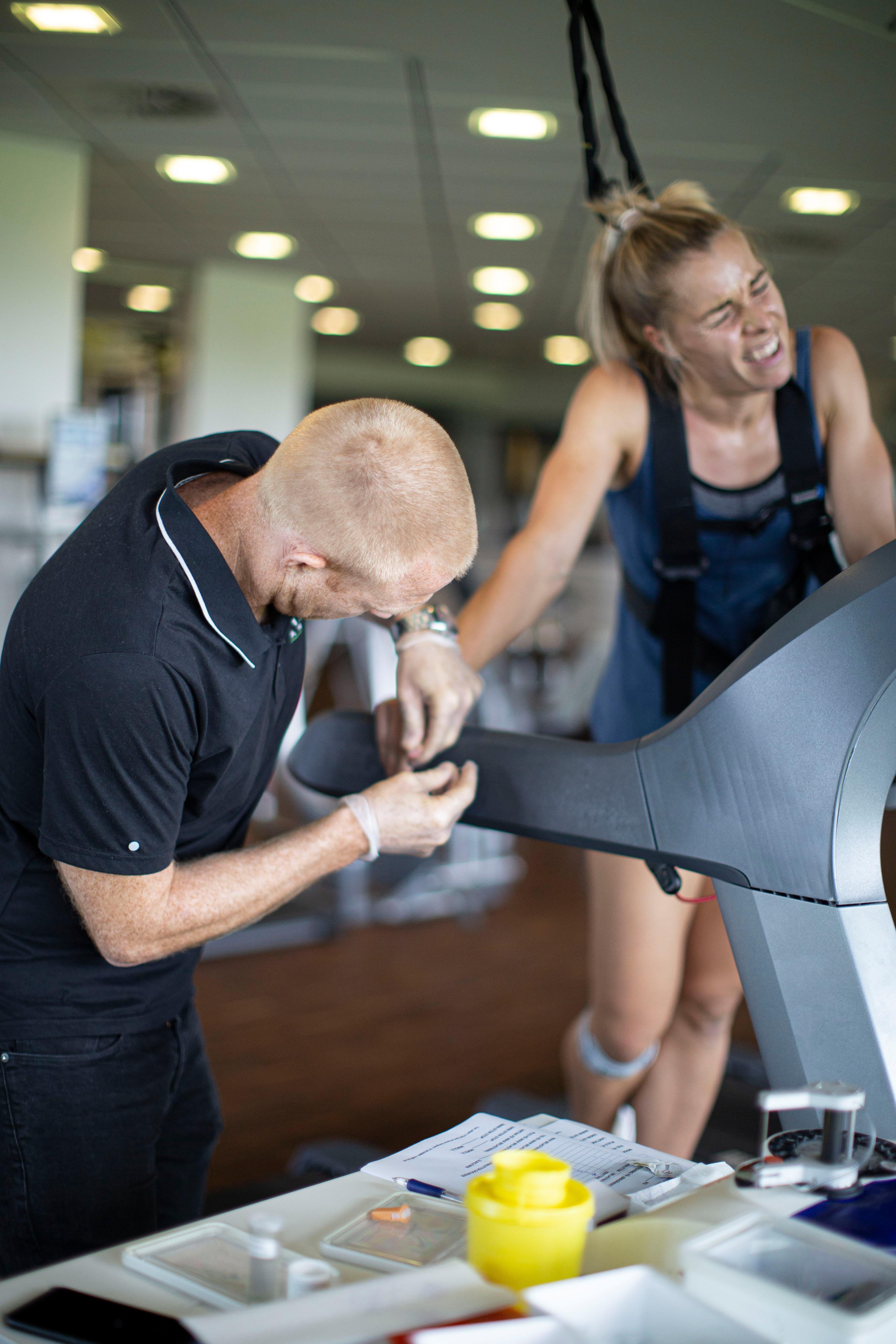 Trappe-testen måler din generelle udholdenhed og kondition på et løbebånd. Her er det tydeligt, at Ida Mathilde udkonkurrerer de to andre atleter på trods af hendes mangel på restitution efter VM-træningscamp i dagene op til.