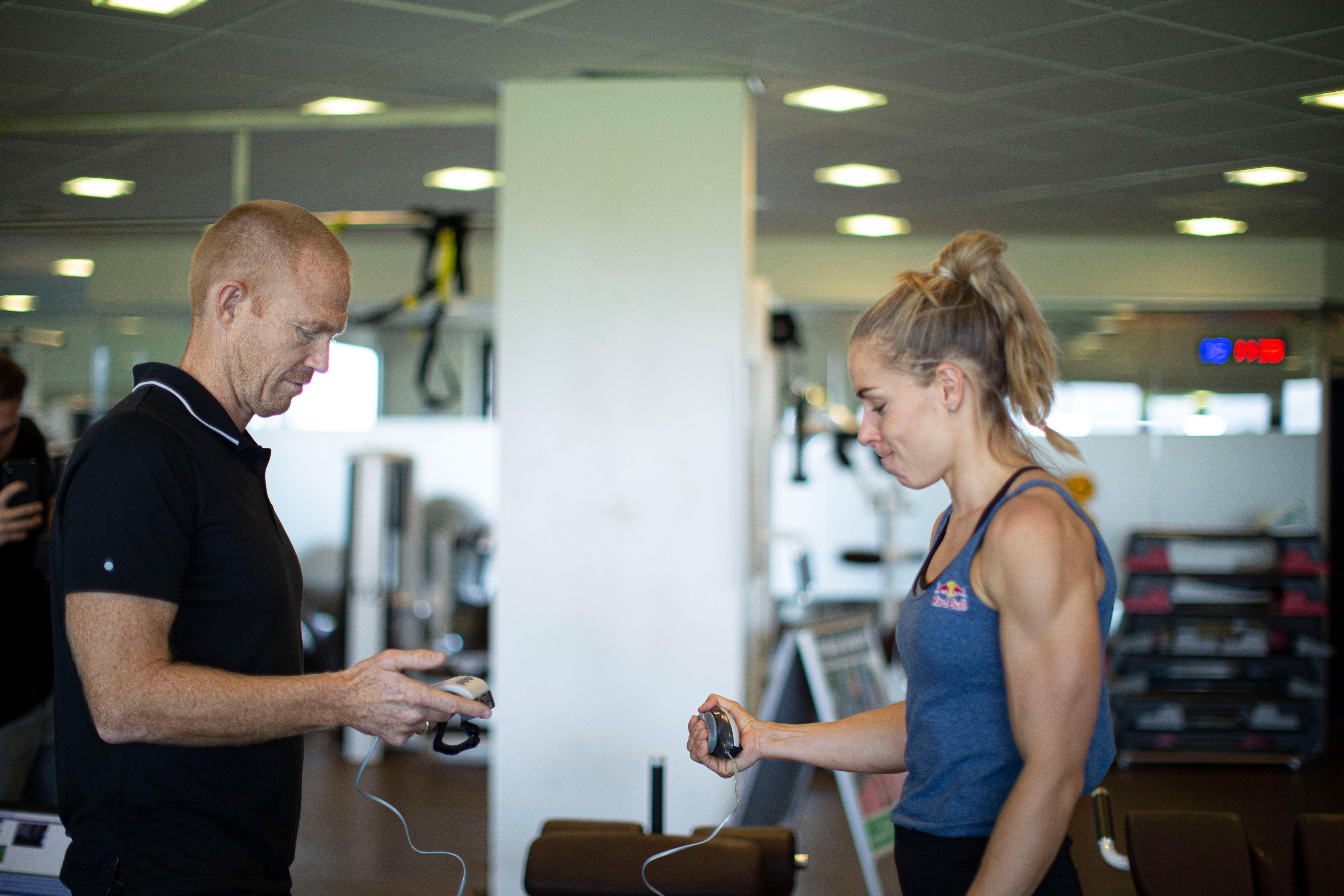 Her handler det om at fokusere på sit afsæt og bagparti. CMJ-øvelsen (Counter-Movement Jump) testes ved en OptoGait-måling. Det er to barer der måler bevægelsesmønstre. Efterfølgende blev der foretaget en RFD-måling ved Kaiser Squat Power-øvelsen. En RFD-måling (eksplosiv kraftudvikling) måler den maksimale kraft du kan udøve ved en given øvelse.