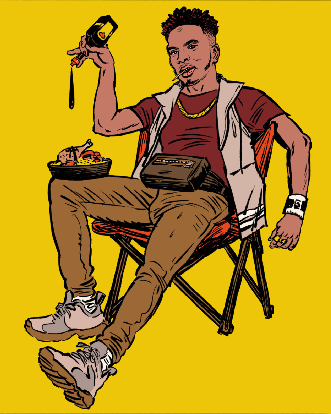 📝 La Recette : À l’origine, tiep (ou tieb) désigne le riz en wolof. Le tiep dont il s’agit ici correspond à une recette plus large, avec des légumes (du chou, du manioc, des carottes), du poisson (tieb bou dien), du poulet (tieb bou guinar) ou encore du boeuf (tieb bou yapp). Le rappeur superstar a donc gardé des goûts simples, et des attaches pour ce plat avec lequel il a grandi, à l’image de l’arôme Maggi, un exhausteur de goût très économique.