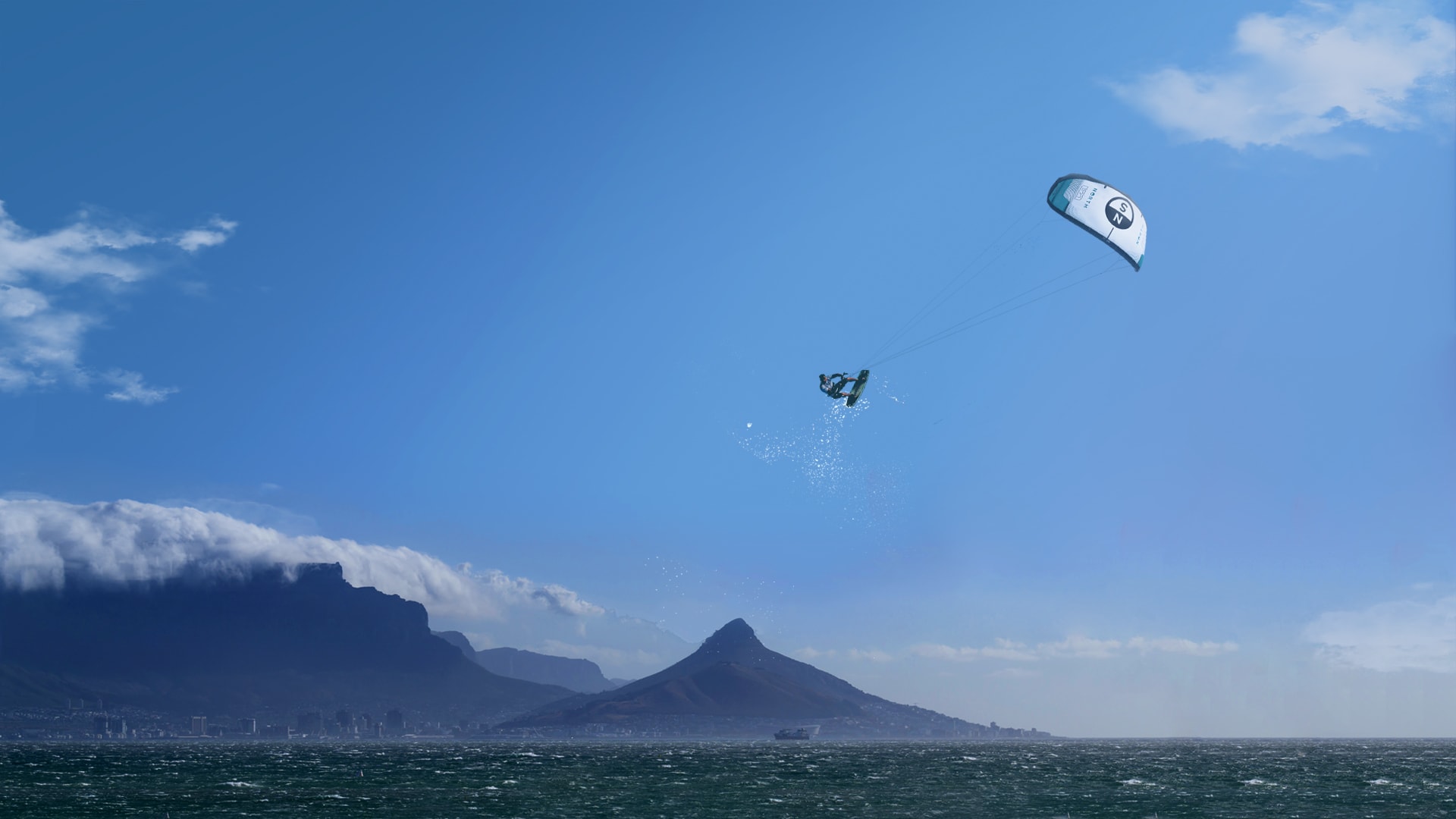 Le Red Bull King of the Air se déroule sur la bien nommée Kite Beach, sur la côte ouest du Cap. Il s'agit d'une immense plage qui offre une vue imprenable sur la fameuse Table Mountain et l'océan. L'endroit est balayé par des vents constants d'environ 30 nœuds à la bonne période de l'année, et l'angle est parfait pour le kitesurf Big Air.
