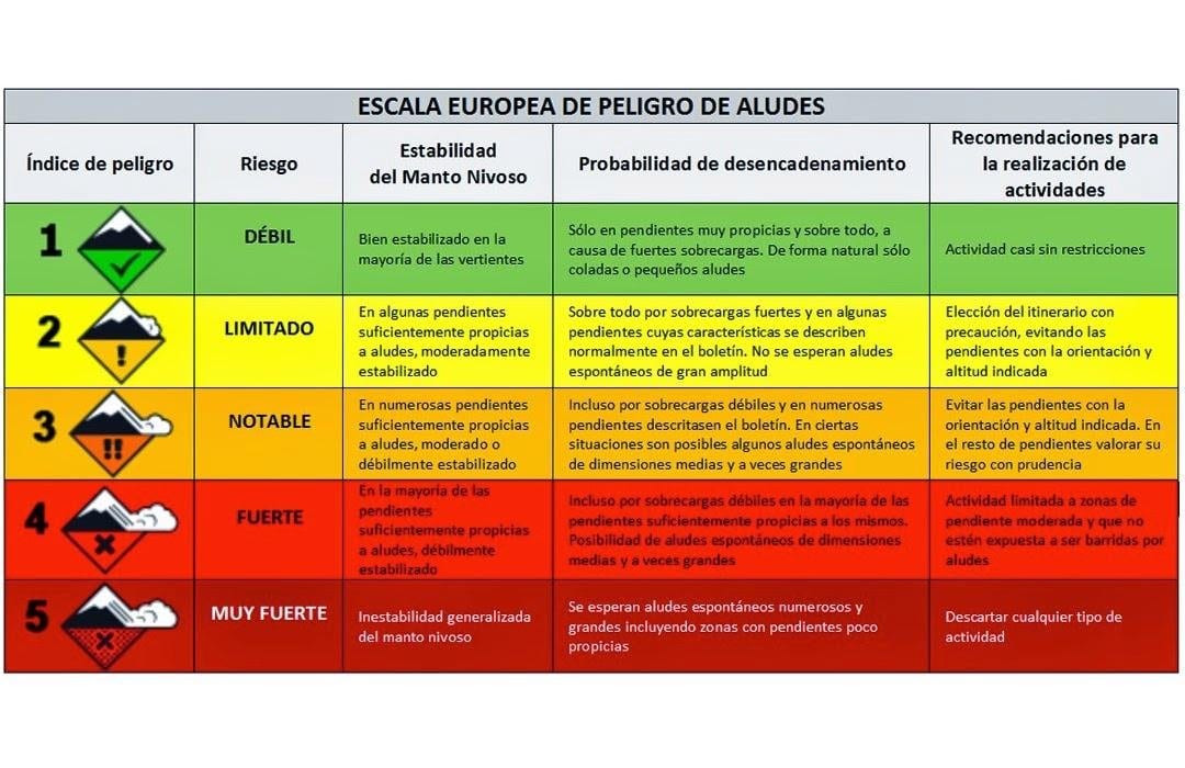 2. Prevenir antes que curar, escala europea de riesgo de aludes y otros indicadores.