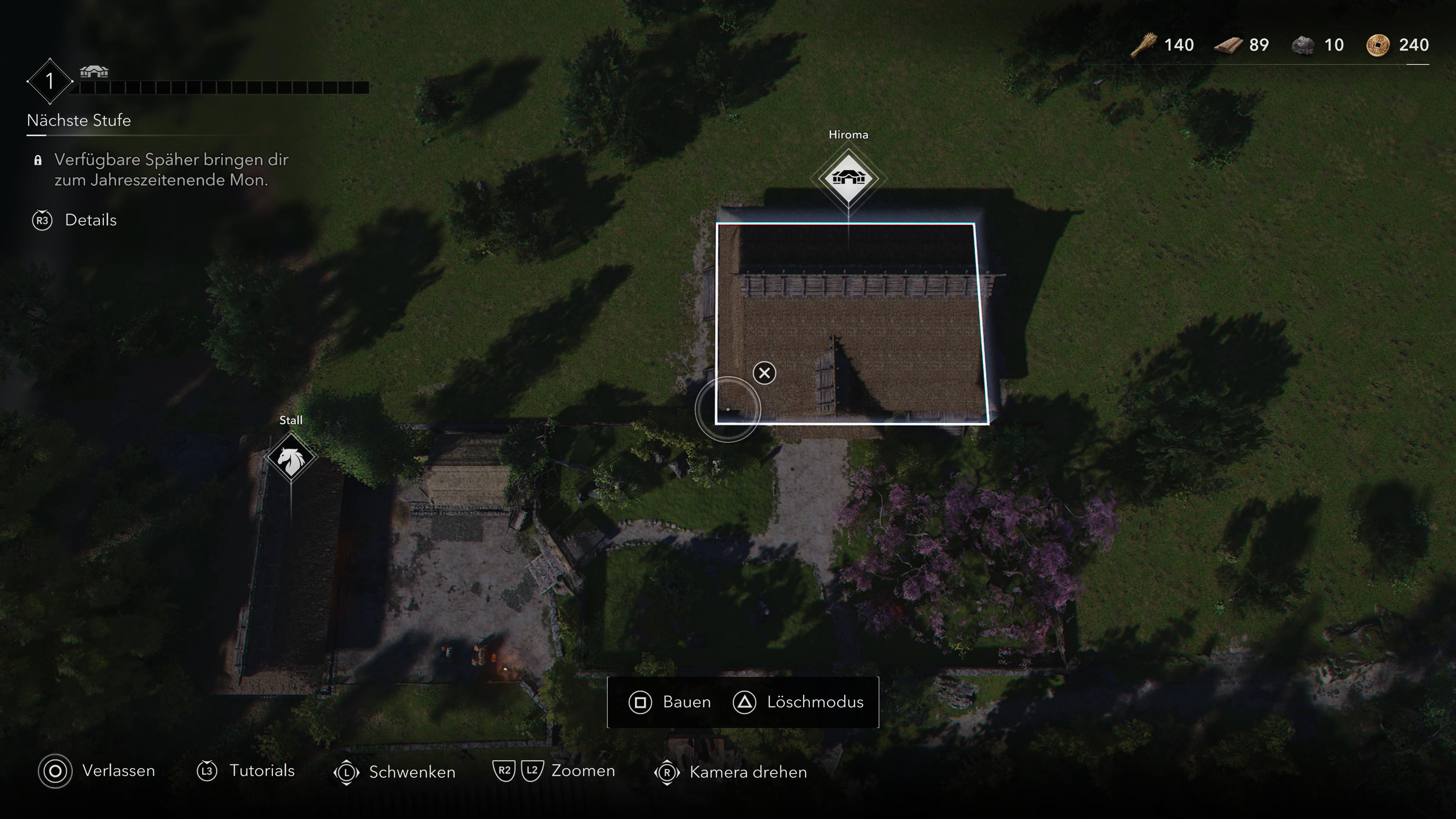 Una nueva mecánica de juego en Assassin's Creed Shadows es construir y ampliar tu propio escondite. Y esto va mucho más allá en la última entrega que en las anteriores de la serie. No solo puedes colocar nuevos edificios, sino también atraer a distintas mascotas o crear caminos.