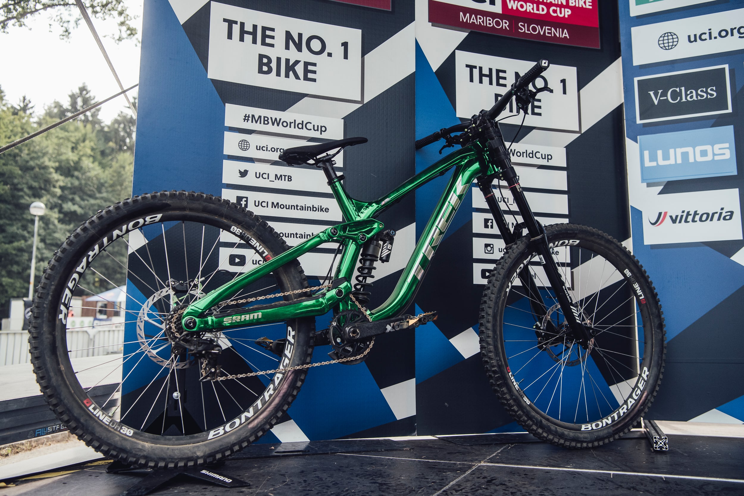 La Canyon Sender montada por Troy Brosnan es a menudo una de las cinco bicicletas más rápidas en descenso, y Brosnan ha aparecido en muchos podios. Para la primera ronda de la Copa del Mundo de 2021 en Leogang, ocupó el primer lugar con una victoria decisiva en su máquina de carreras verde.