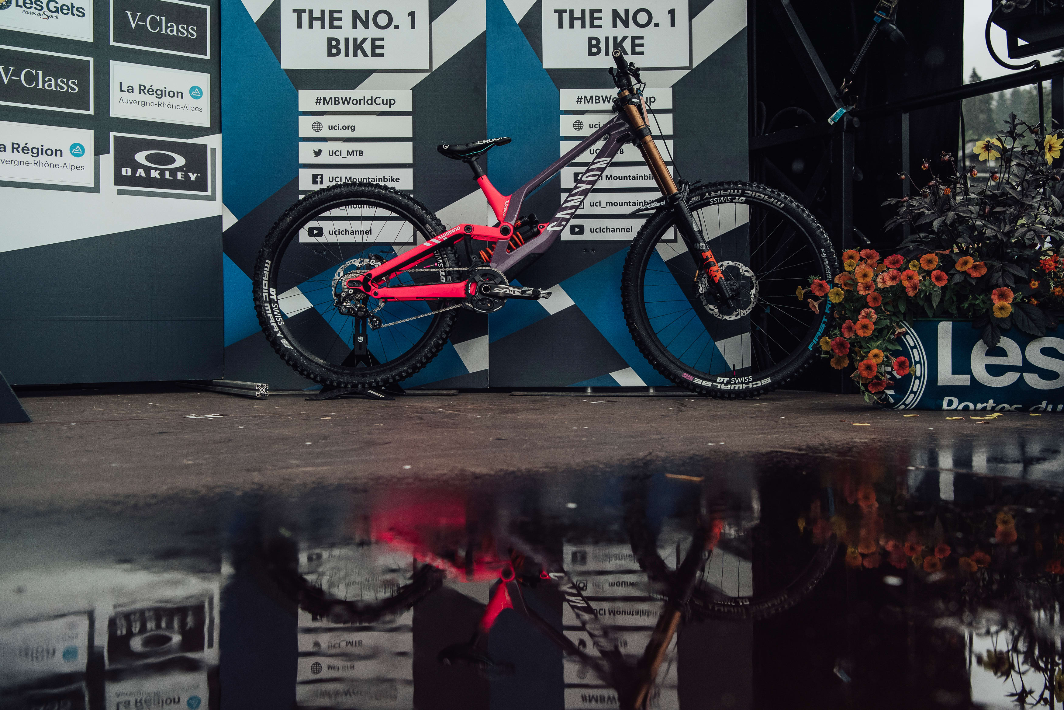 Su distintiva Canyon Sender en su rosa característico ciertamente llama la atención en las pistas de la serie de la Copa del Mundo, especialmente cuando se combina con la increíble variedad de ropa personalizada de Seagrave.