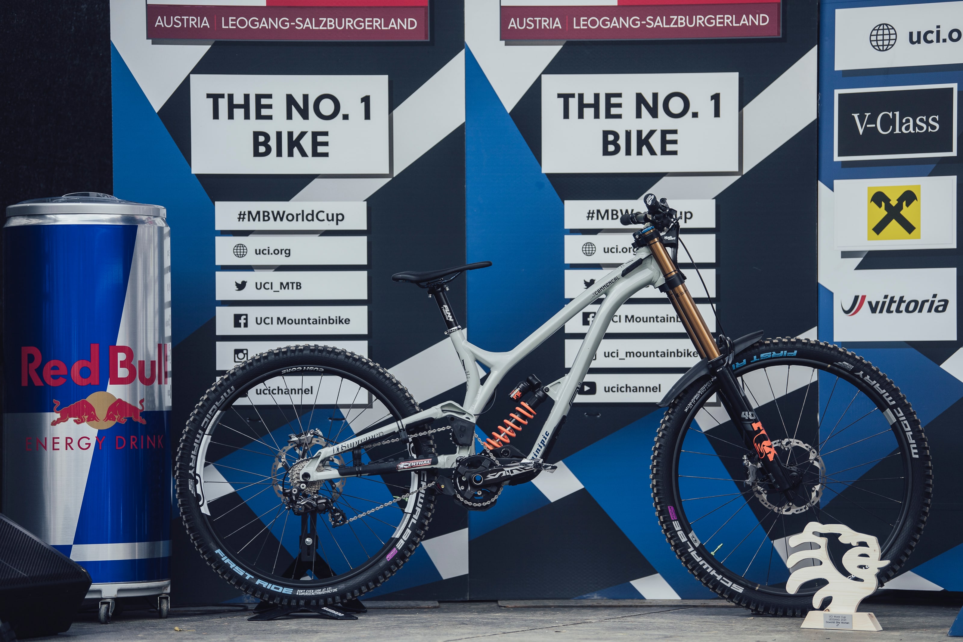 Sí, es otra Commençal Supreme. Si aún no te habías dado cuenta de la tendencia, dejémoslo claro: la Commençal Supreme es una opción popular con MUCHOS ciclistas, incluido la Campeona del Mundo 2020 Camille Balanche. Balanche consolidó su posición en las carreras de élite con una victoria en Leogang, la primera carrera de la temporada.