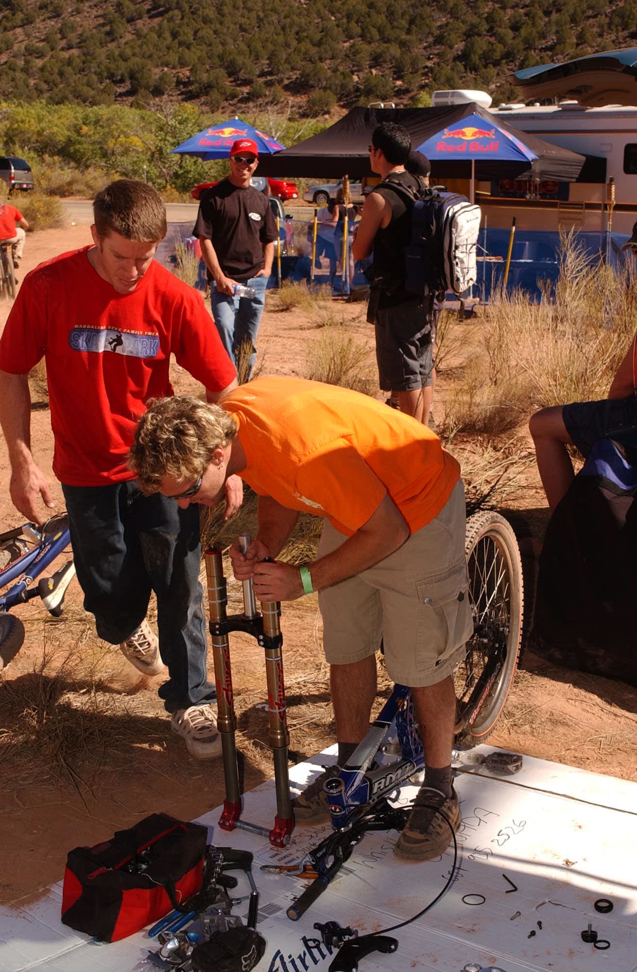 Como muchas de las marcas de bicicletas que ves en las fotos de Red Bull Rampage, las tendencias de suspensión se han desvanecido. Los primeros atletas del Red Bull Rampage montaban amortiguadores de muelles helicoidales y muchos competían con horquillas invertidas de marcas como 5th Element y Avalanche.