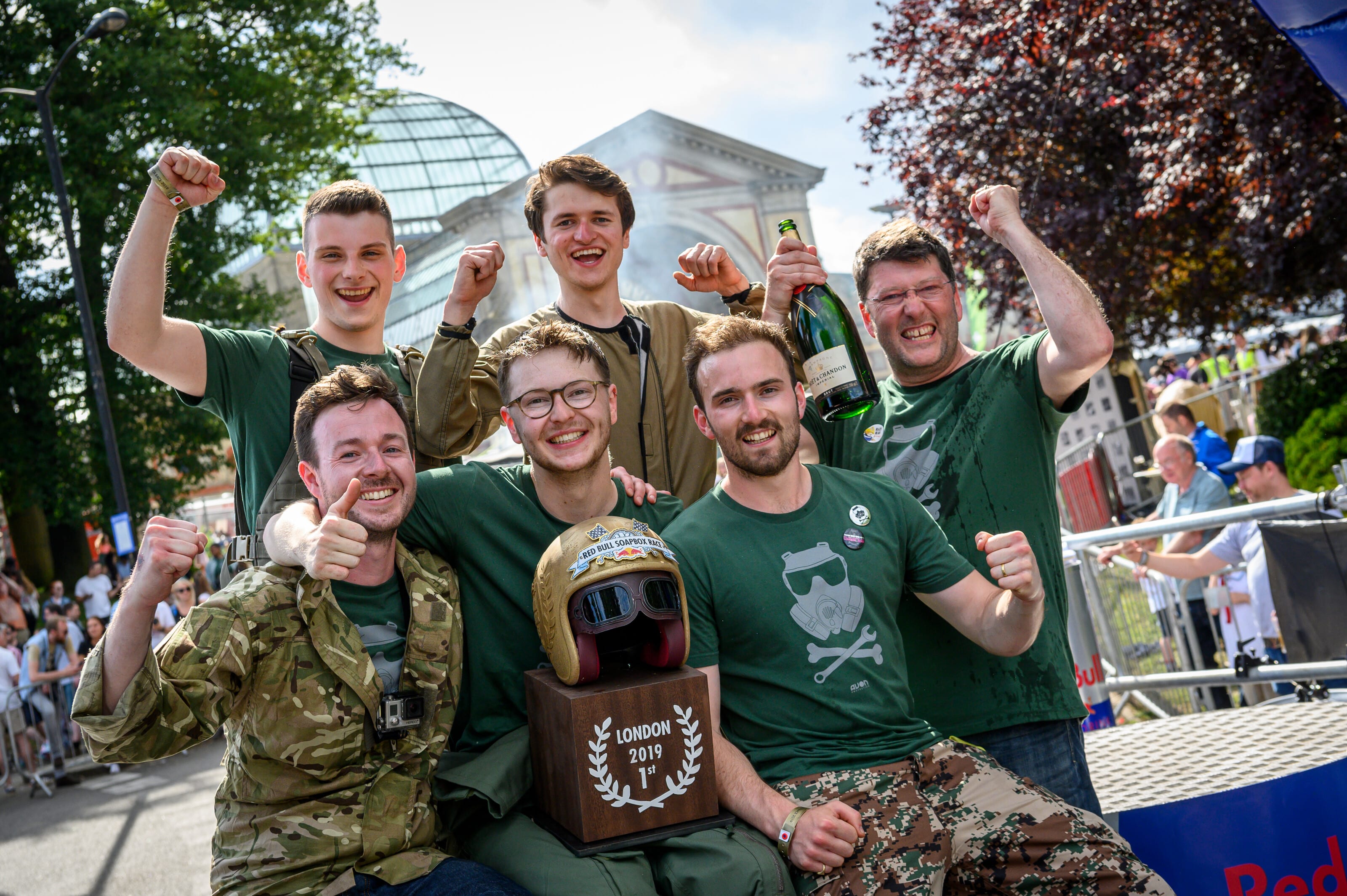 Para Nick y su equipo (todos ellos ingenieros de diseño de una empresa que produce equipos para proteger a los soldados de los agentes y gases de guerra química) su carrera de debut en 2017 resultó una verdadera curva de aprendizaje. Apareciendo dentro de una máscara de gas gigante sobre ruedas, se estrellaron espectacularmente en las laderas del Alexandra Palace de Londres, volvieron al taller y regresaron dos años después para reclamar el título en un coche muy modificado.