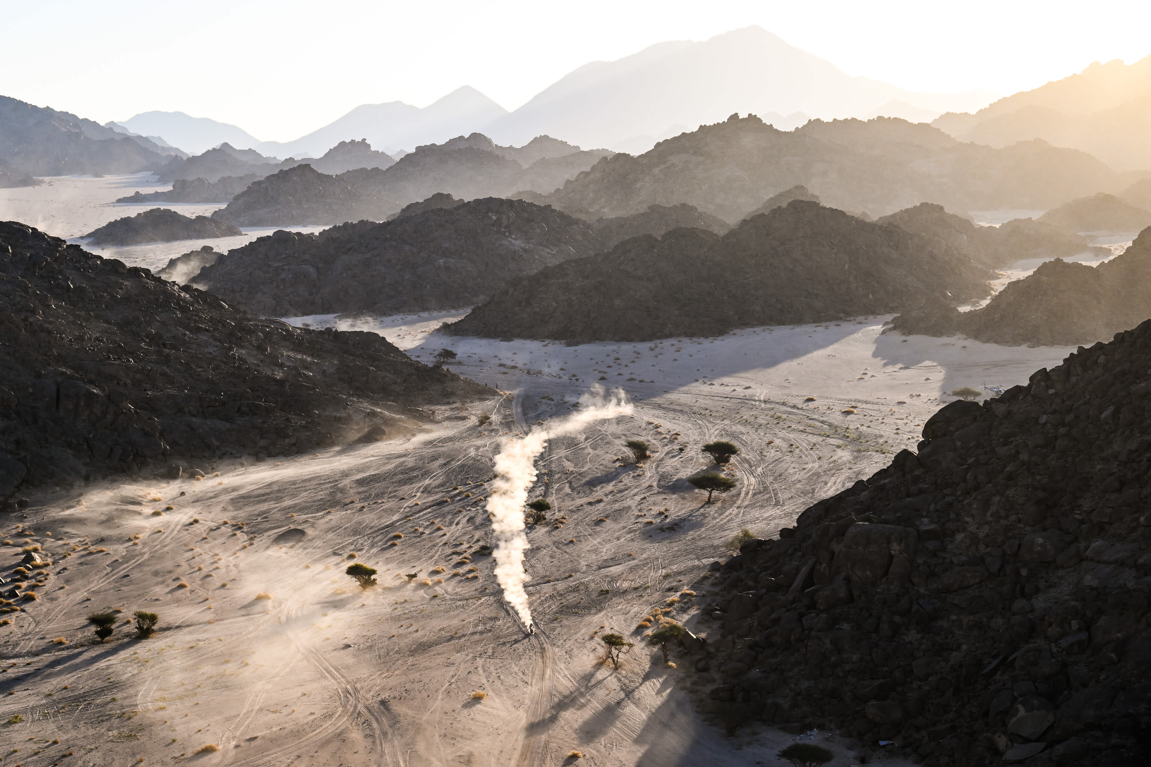 La primera etapa es otro circuito que parte de la ciudad portuaria de Yanbu y se adentra en la naturaleza salvaje, esta vez con más de 300 km de recorrido. “Será más fácil que el año pasado, no os preocupéis”, dice David Castera, haciéndolo sonar casi como unas vacaciones. “Es bastante variada, con hermosos valles y algunas zonas de rocas”. Los dakarianos también encontrarán el primer punto de asistencia a mitad de etapa, donde podrán reemplazar neumáticos destrozados por las piedras.