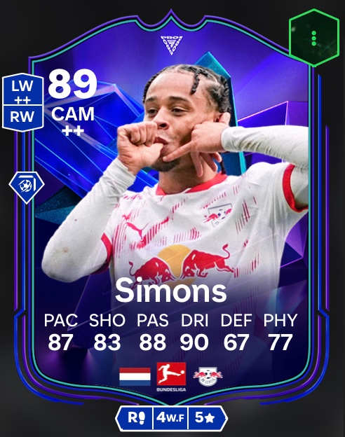 Xavi Simons, estrella del RB Leipzig, casi ha alcanzado el top 3 de jugadores con cartas especiales en FC 25 Ultimate Team. El mejor jugador de los Red Bulls tiene una tarjeta dinámica FC Pro que aumenta su valoración en función del rendimiento de FC 25 Pro RBLZ_Vejrgang. Esto significa que, si el campeón de RBLZ Gaming llega lejos en FC 25 en la Copa del Mundo, la tarjeta de Xavi Simons mejora y adquiere más valor. La tarjeta ya está jugando sensacionalmente: 90 de regate y 87 de velocidad son sólo dos de varios valores superiores.