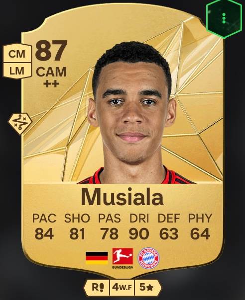 Nos acercamos al podio y también a la respuesta a la pregunta del mejor portero en FC 25. Jamal Musiala ya no es un talento, pero ha sido una superestrella desde la Eurocopa de casa 2024 a más tardar. Su valoración global de 87 en FC 25 está más que justificada. Su regate (90) y su velocidad (84) destacan en las valoraciones individuales.