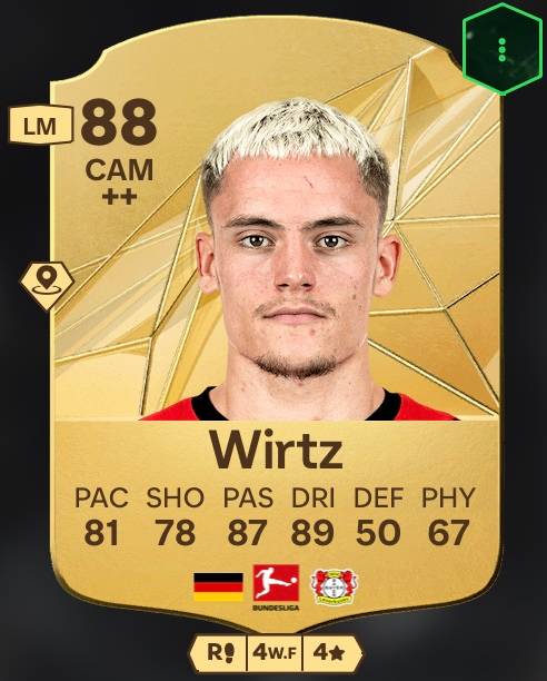 Por supuesto, Florian Wirtz no debería faltar en esta lista. El futbolista alemán más cotizado del momento también recibió una puntuación de 88 por parte del editor EA Sports en FC 25. Los aspectos más destacados de Wirtz son: 89 en regate y 87 en pase. Pero también destaca la velocidad (81) de la estrella del Bayer 04 Leverkusen.