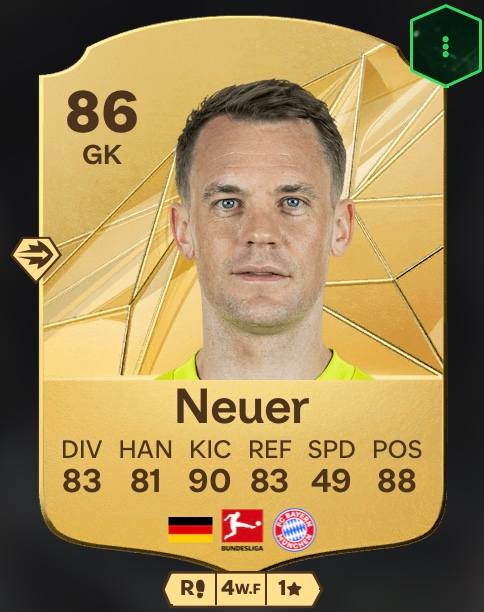 El campeón del mundo y, según muchos aficionados al fútbol, el mejor portero de todos los tiempos del FC Bayern de Múnich, tiene una valoración global de 86 en FC 25. En diciembre, Manuel Neuer fue noticia porque recibió la primera tarjeta roja de su carrera en los octavos de final de la Copa DFB contra el Bayer 04 Leverkusen (0:1). Es el segundo mejor portero de la FC 25, con una valoración global de 86. ¿Quién es el mejor portero? Lo sabremos más adelante.