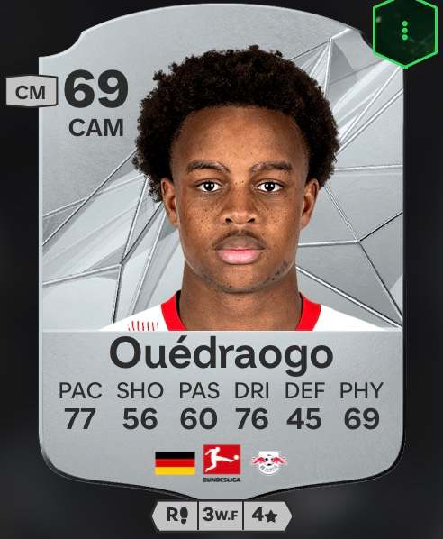 El nuevo fichaje del RB Leipzig es uno de los mayores talentos de Alemania. Assan Ouédraogo llegó a los Red Bull procedente del FC Schalke 04 de segunda división en el verano de 2024. Debido a una lesión en los isquiotibiales, apenas ha jugado hasta ahora. En el modo carrera de FC 25, el centrocampista de 18 años tiene un enorme potencial de +18, acorde con su edad.