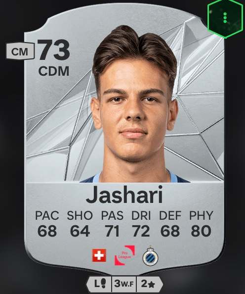 Ardon Jashari, de 22 años, dejó su club de origen, el FC Luzern, en el verano de 2024 y se trasladó de Suiza al FC Brujas belga. El dos veces jugador de la selección nacional es un habitual allí. Con el Brujas, Jashari no sólo juega en la primera división belga, sino también en la Liga de Campeones. Su potencial en el modo carrera de FC 25 es de +10.