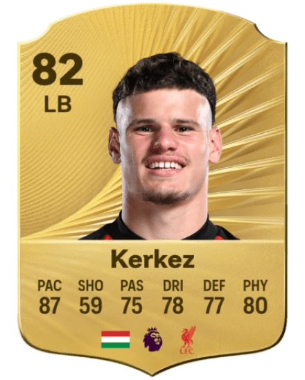 Dominik Szoboszlai ya no es la única estrella húngara que juega en el Liverpool a orillas del Mersey. Milos Kerkez tiene la difícil tarea de competir con Andrew Robertson. Aunque no es tan rápido como Alejandro Balde (88 y 87 en aceleración y velocidad), Kerkez es una opción a tener en cuenta como lateral izquierdo.