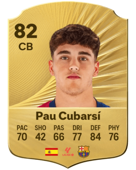 De vuelta en Barcelona, Pau Cubarsí se ha hecho un nombre bajo las órdenes de Hansi Flick, lo suficiente como para ganarse una convocatoria con la selección nacional. Con una valoración general de 82 con solo 18 años, este central relativamente pequeño, de 1,82 m, está esperando dar un salto cualitativo. Ya puede integrarse en cualquier equipo, ya que todas sus estadísticas defensivas superan los 80 puntos, lo que lo convierte en un jugador sólido.