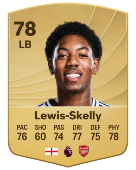 Con 19 años, un potencial de 87 y atributos cercanos a 80 en todas las categorías importantes, Myles Lewis-Skelly debería brillar en el flanco izquierdo de tu defensa y contribuir cuando suba al ataque.
