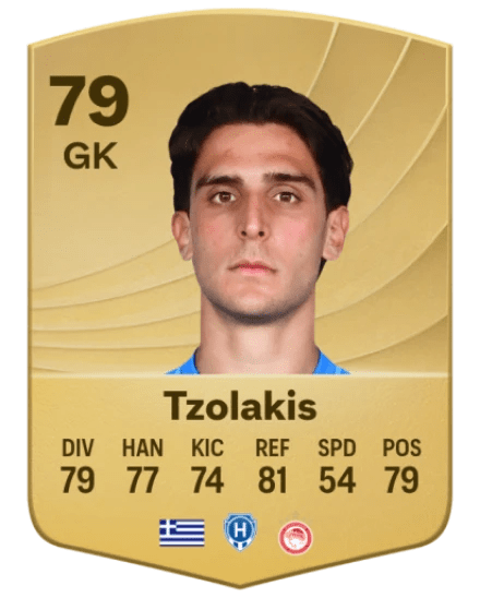 Comenzamos nuestro recorrido mundial por los mejores porteros jóvenes griegos. El ‘diminuto’ Konstantinos Tzolakis (1,98 m) puede que tenga 22 años, una edad relativamente venerable para un niño prodigio, pero con una valoración general de 79, ofrece solidez garantizada desde el primer día. Además, tiene una gran habilidad en los centros, así que si alguna vez te enfrentas al Arsenal y su avalancha de goles de córner, tendrás una gran ventaja.