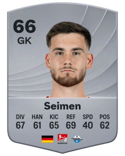Con solo 66 y jugando en un club de segunda división, Dennis Seimen es una opción económica para reforzar tu portería. Y, buena noticia, puede llegar hasta un potencial de 84. Sin embargo, te llevará algún tiempo llegar hasta ahí.