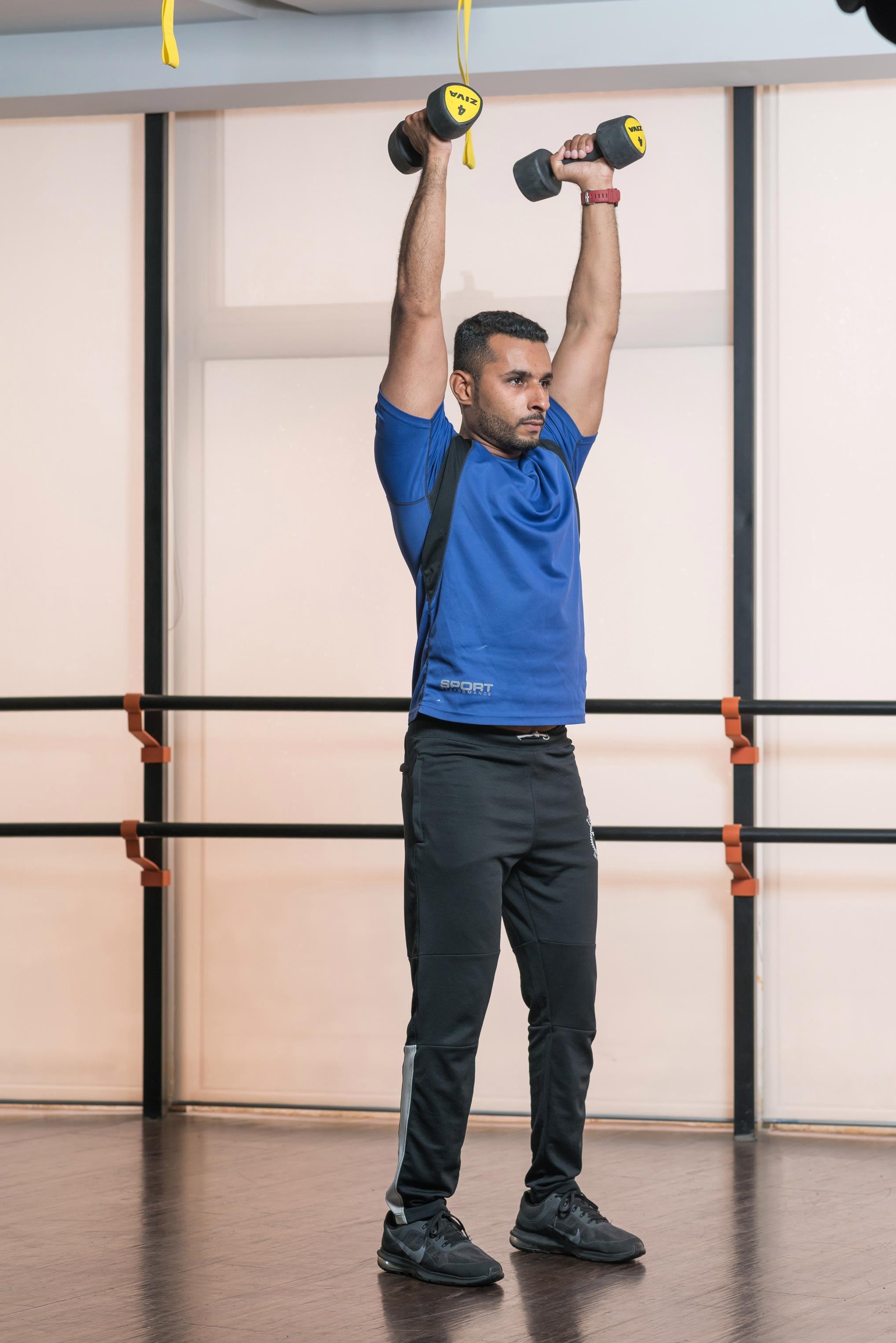 Si quieres convertirte en una potencia capaz de levantar a una pareja de baile por encima de tu cabeza con una sola mano, o simplemente quieres impresionar a los jueces de Red Bull Dance Your Style con el tiempo que puedes mantenerte sin levantarte del suelo, dale al soporte de pesas. Utilizando la misma regla de 20 segundos de repeticiones seguidos de 10 segundos de descanso, como en el caso anterior, realizar curl de bíceps te ayudará a generar verdadera potencia en los brazos y la parte superior del cuerpo. Como se ve en la imagen de arriba, hacer curl de bíceps con martillo y prensa con mancuernas no es una mala forma de hacerlo.