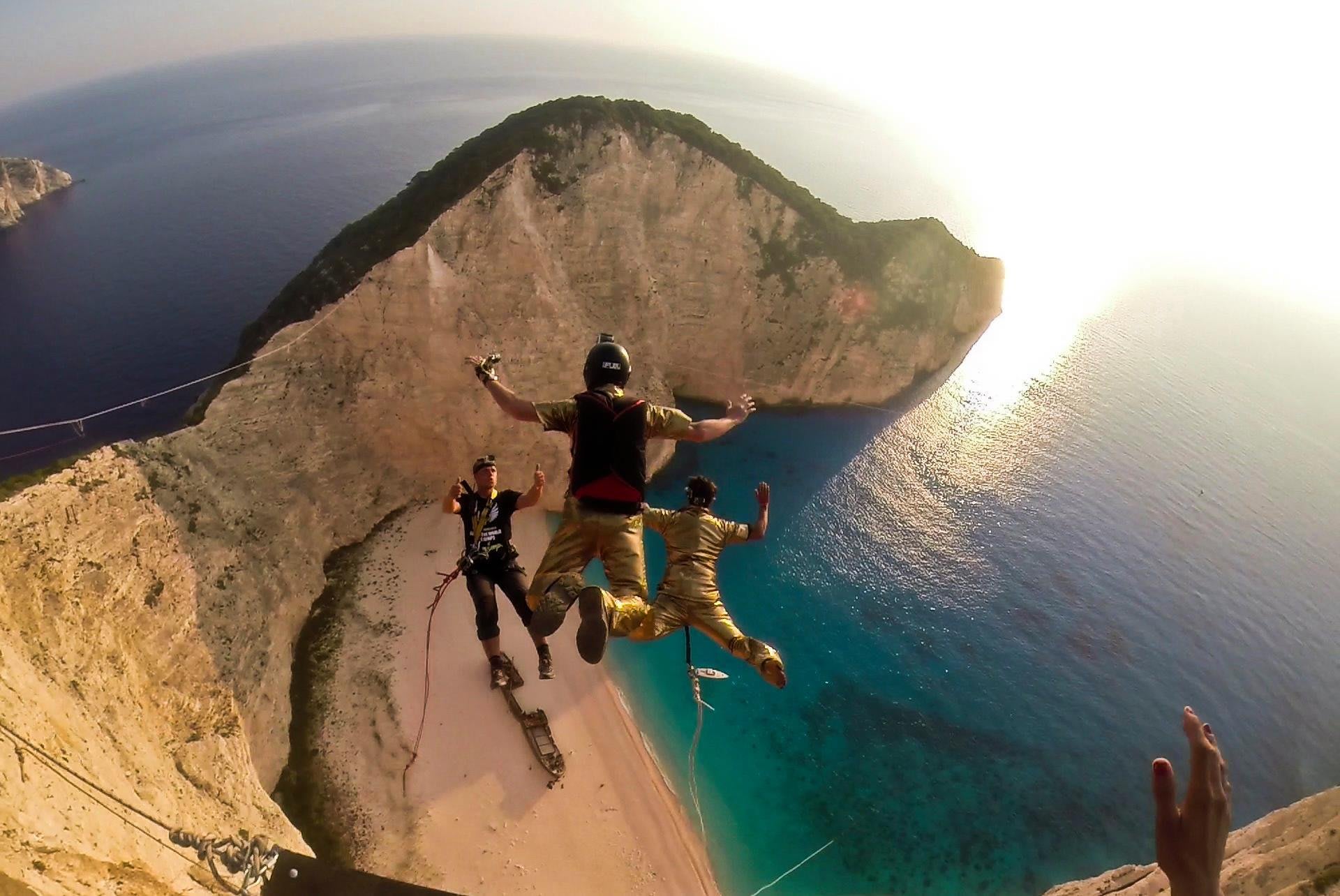 Otro sería el que realizamos en la paradisíaca Navagio Beach o Shipwreck Beach en Zakynthos (Grecia) en una pared vertical de unos 200 metros donde estuvimos casi dos meses saltando y disfrutando de la isla.