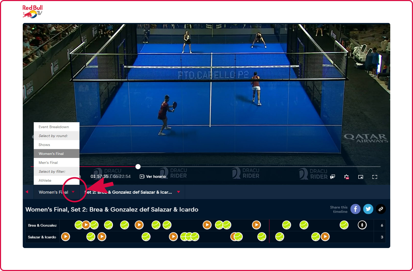 Si no pudiste seguir algún evento de Premier Padel en directo, no te preocupes; la retransmisión de Red Bull TV podrá verse en redifusión una vez concluidos todos los torneos. Las rondas de cuartos de final, semifinales y finales estarán siempre disponibles para recuperar la acción de cualquiera de los torneos. Además, el match analyzer ofrecerá la posibilidad de rescatar los mejores momentos de cada partido.