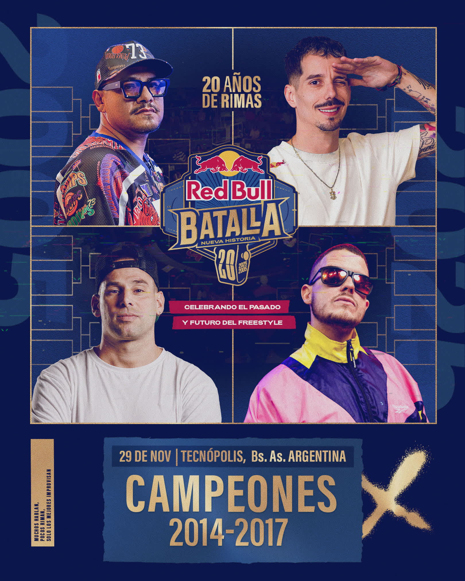 Entonces, los finalistas se disputarán el título en una última ronda épica. Red Bull Batalla: Nueva Historia será un evento inolvidable, que hará un homenaje al pasado, presente y futuro del freestyle.