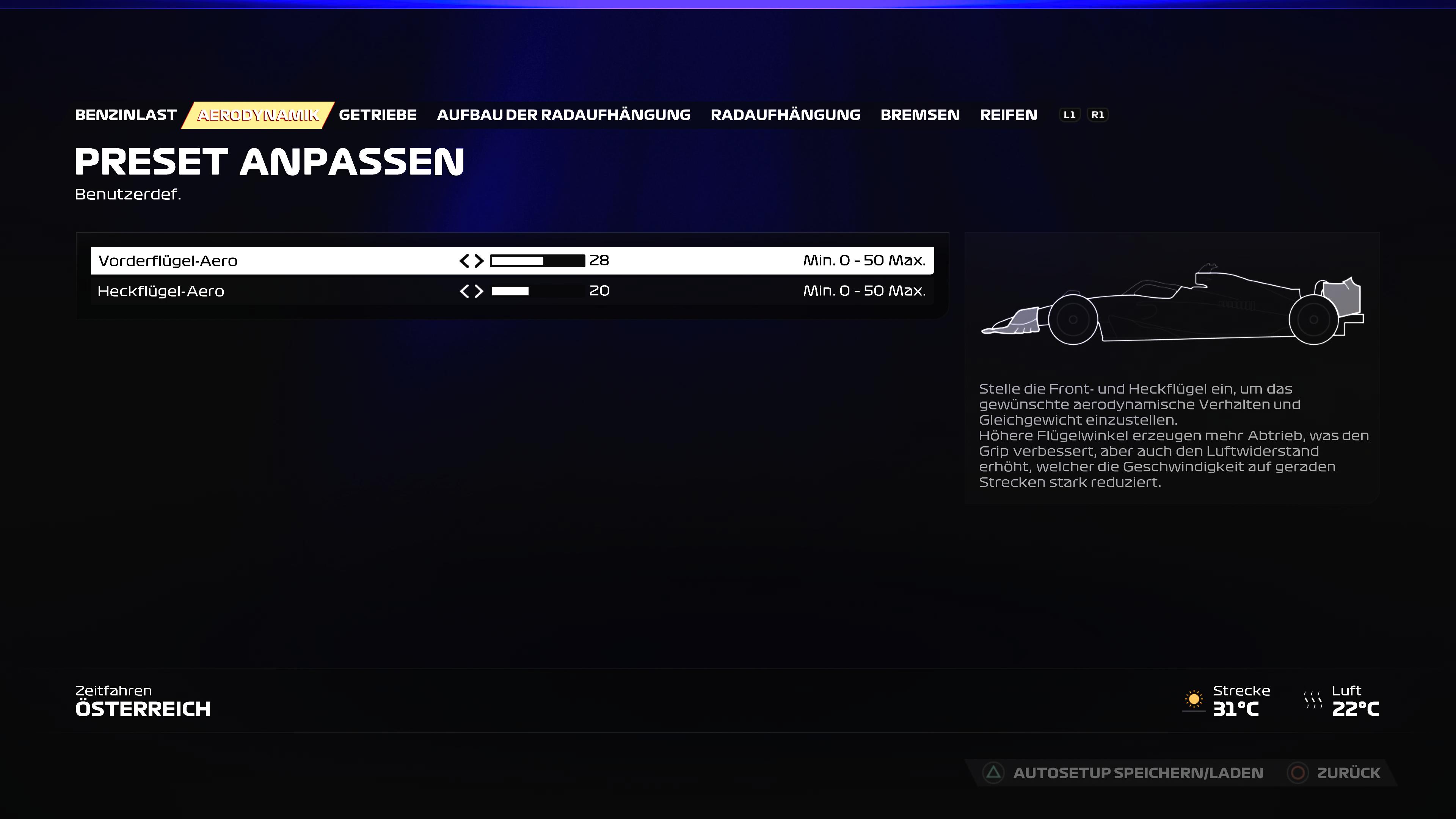 Estos preajustes son un buen punto de partida que, dependiendo del circuito, puede suponer una diferencia de varios segundos en el tiempo por vuelta. Los circuitos lentos, como Mónaco, por ejemplo, requieren más carga aerodinámica, mientras que los más rápidos, como el Red Bull Ring, exigen una configuración completamente diferente.