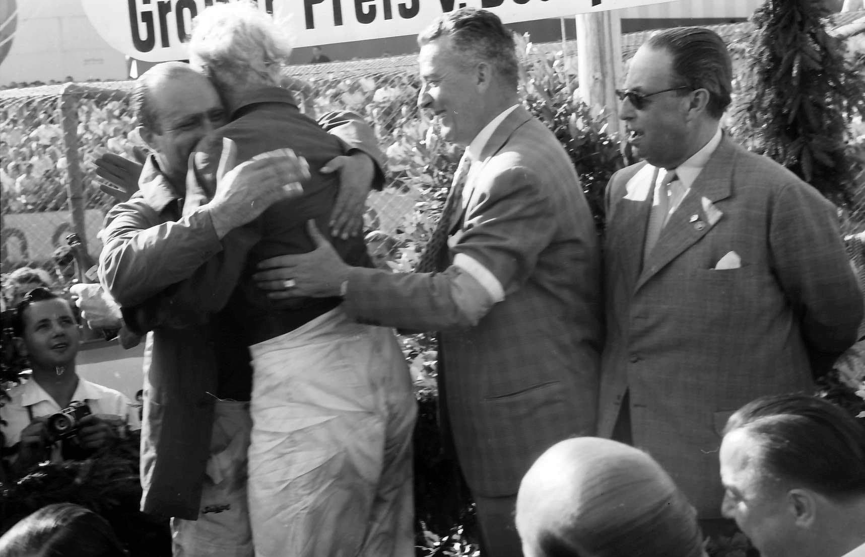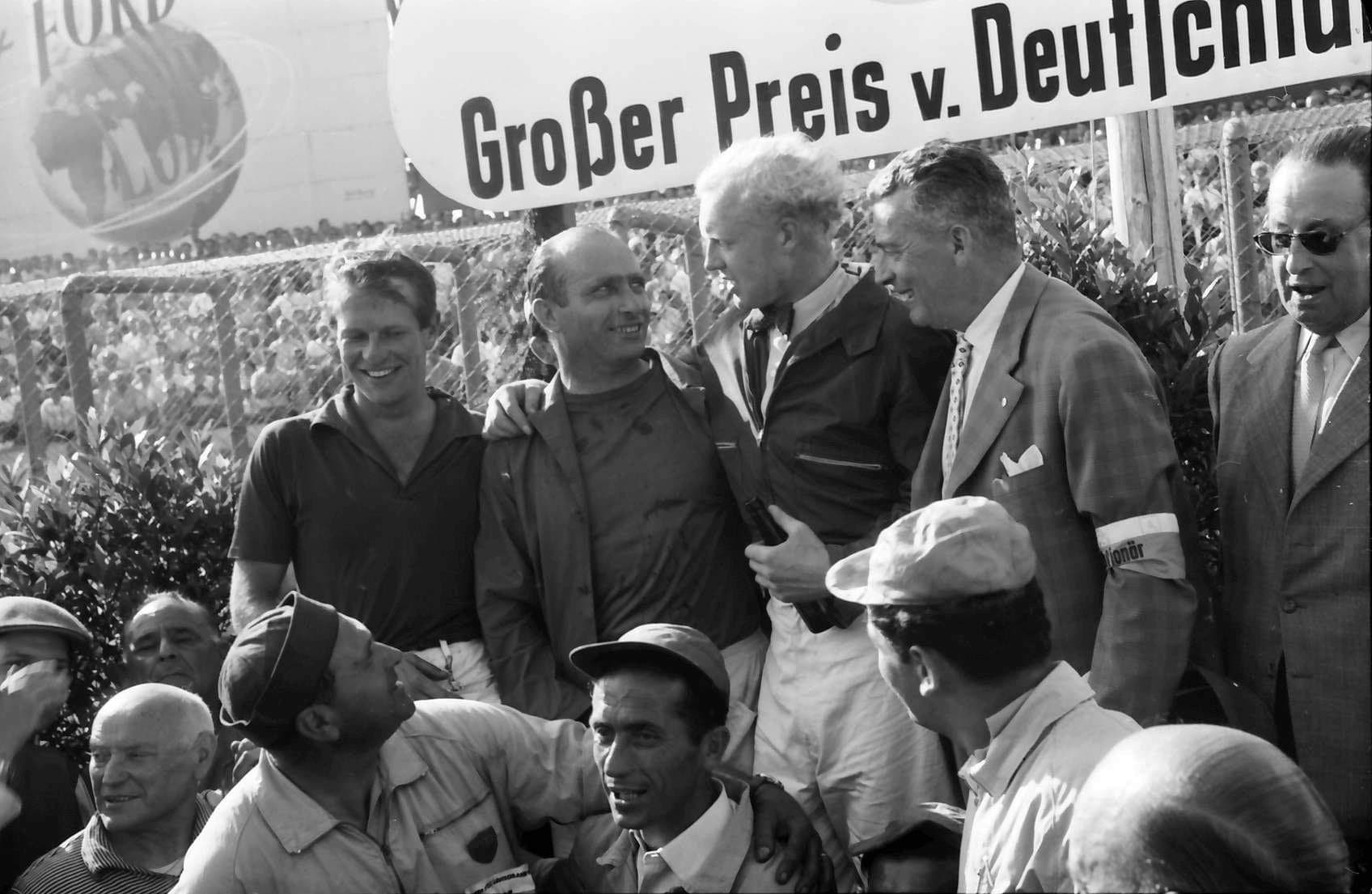 A partir de entonces, el de Balcarce desplegó todo su poder al volante, llegando a rebajar el récord del Nordschelife hasta 9 veces (siete consecutivas), y superando a Hawthorn, líder, en un interior en el que Fangio tenía dos ruedas en la hierba. Solo el empecinamiento de Hawthorn impidió que Fangio tuviese la victoria asegurada hasta la misma recta de meta, perdiendo la victoria por solo 3,6 segundos. Mike sería cuarto en la general, ese año.