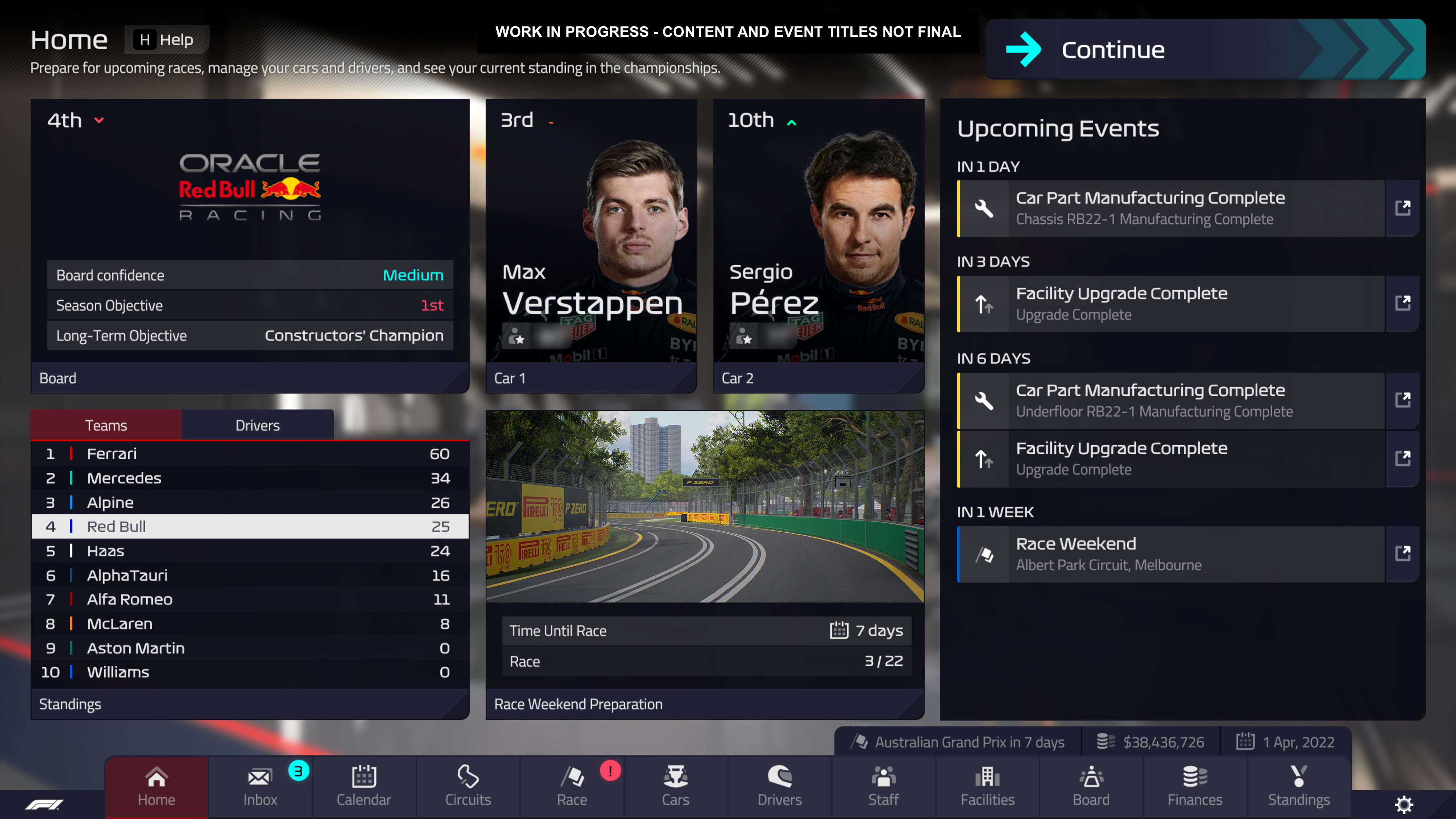 Desde la sede, puedes, por ejemplo, atraer nuevos patrocinadores, contratar pilotos o ampliar tu equipo de ingenieros, que seguirán desarrollando los coches de carreras a lo largo de la temporada. F1 Manager 2022 también incluirá aspectos estratégicos.