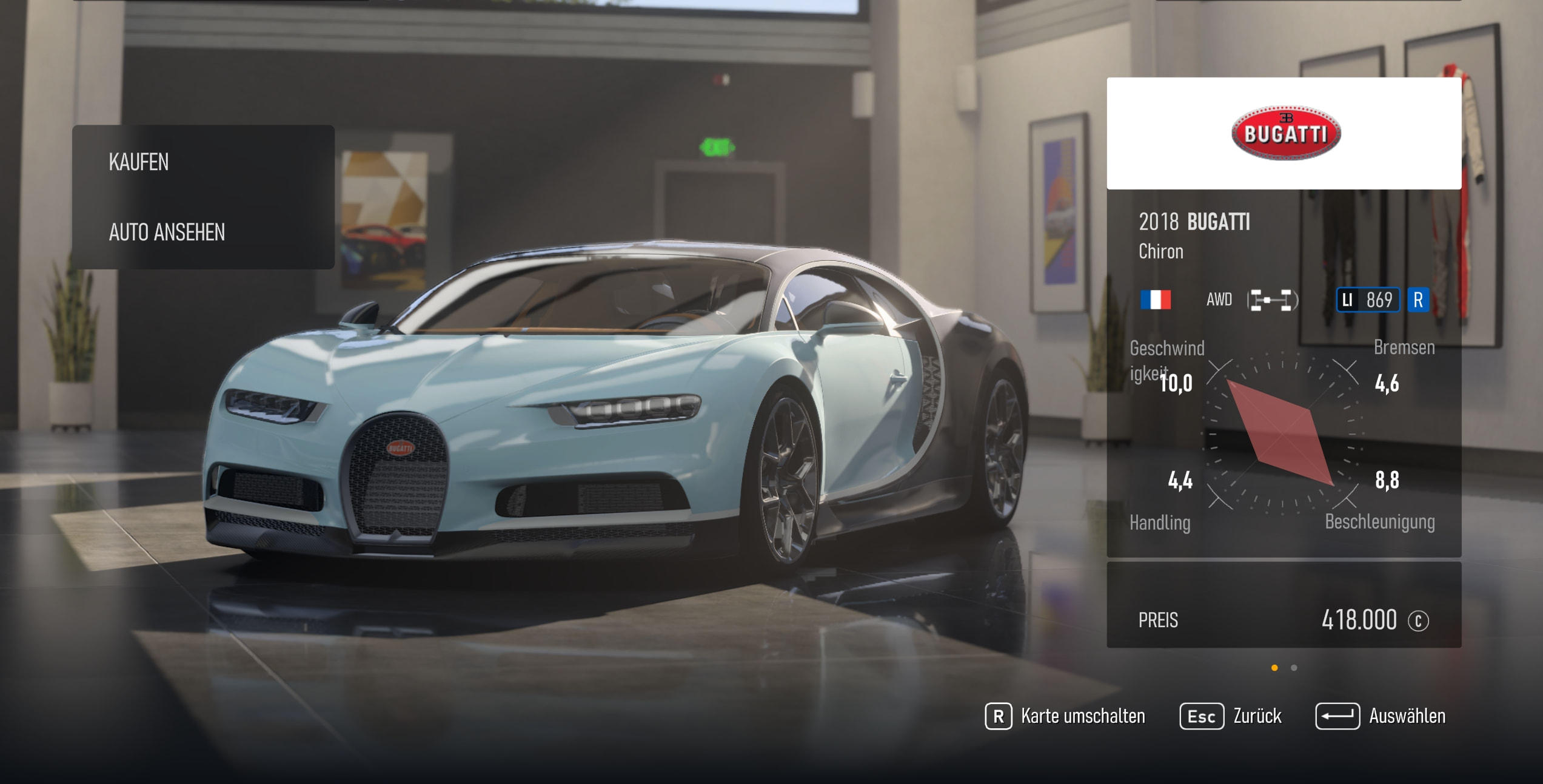 El increíble coche francés también tiene un valor de velocidad de 10, pero a unos 434 km/h no es tan rápido como el Jesko.