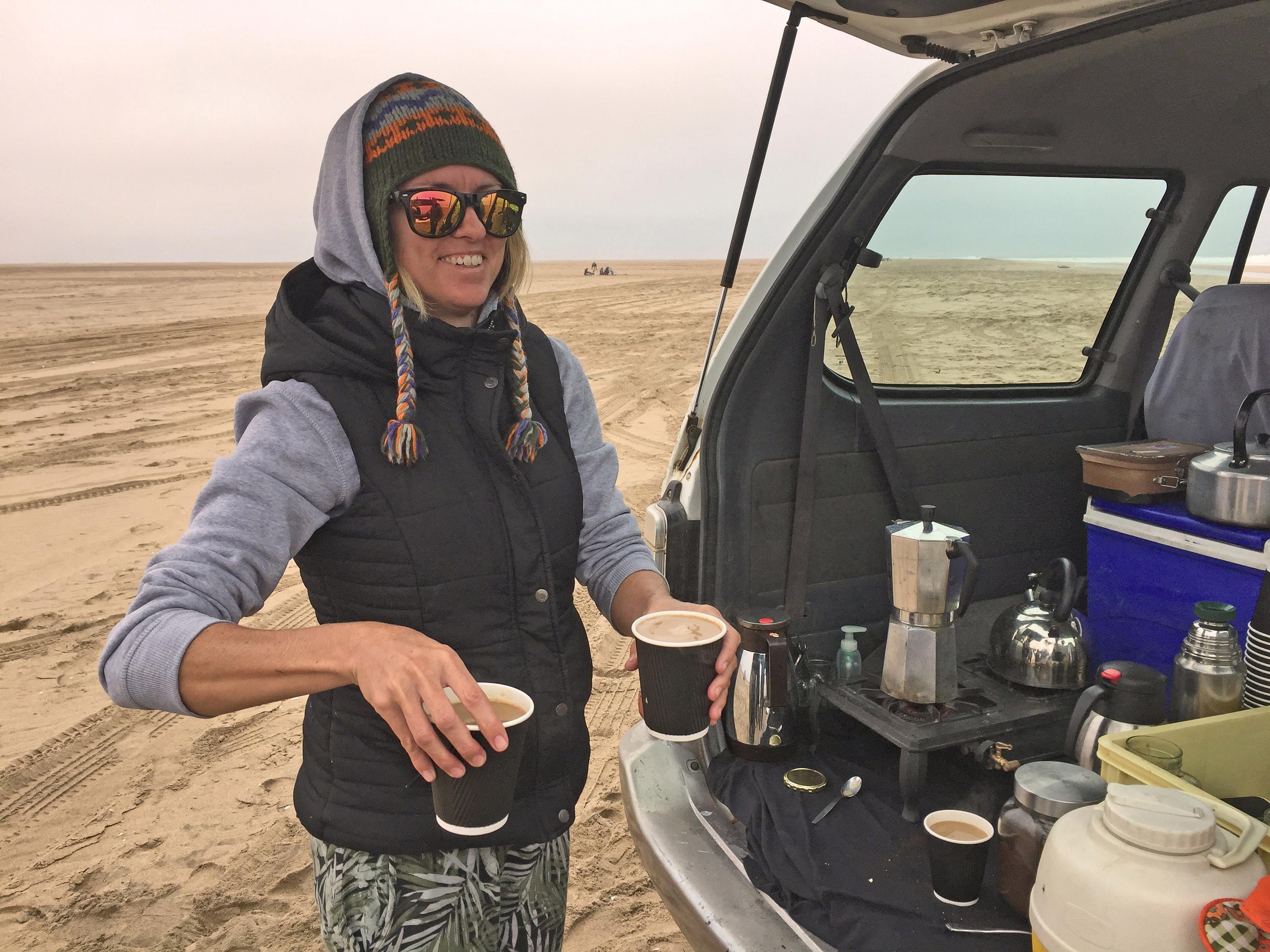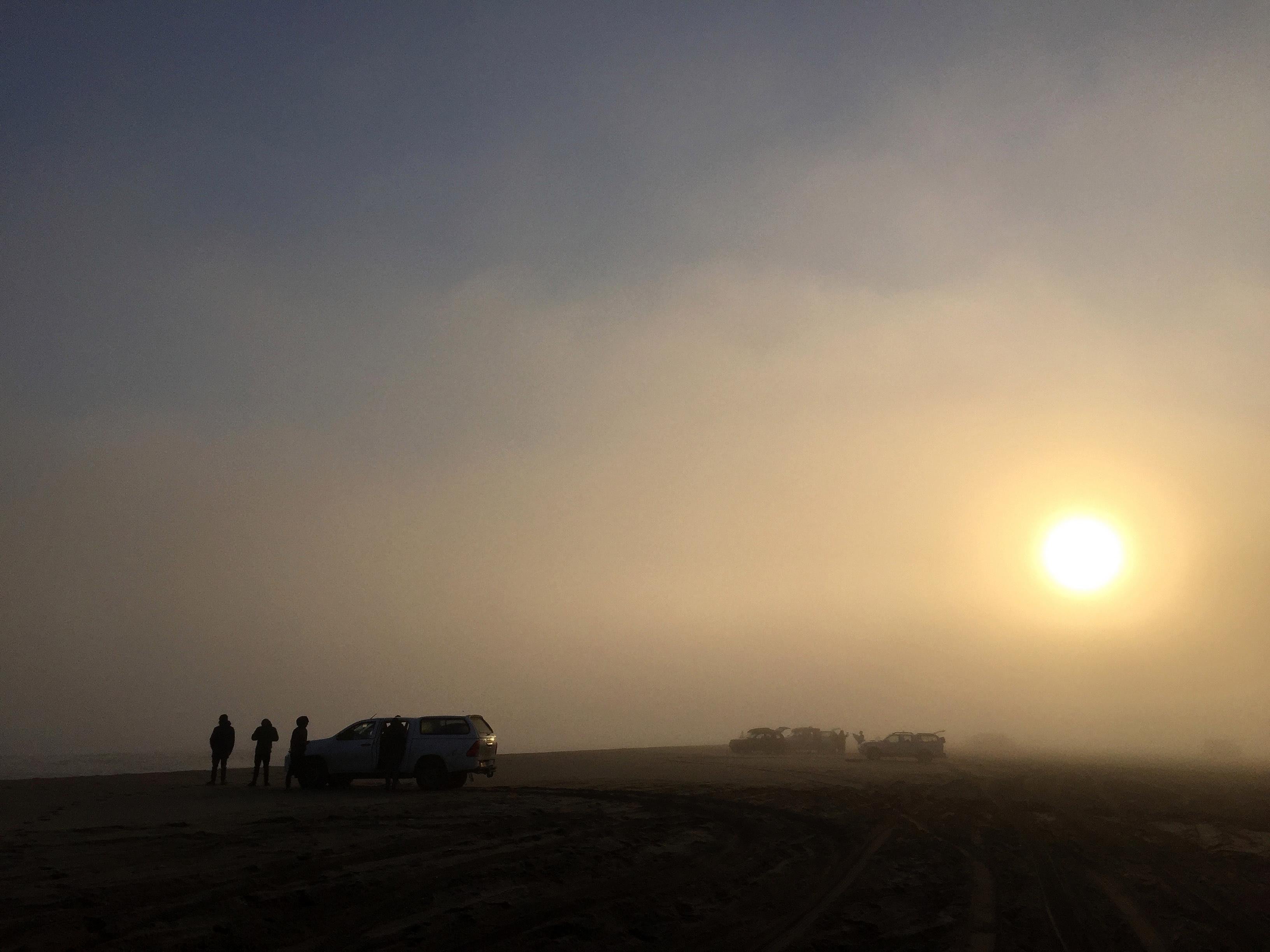 Ir a surfear al desierto a menudo nos haría pensar en sol y temperaturas altas. ¡Nada más lejos de la realidad! Tanto fuera como dentro del agua, ¡hace frío! El agua ronda los 13ºC y, fuera, el frío del desierto es helador.