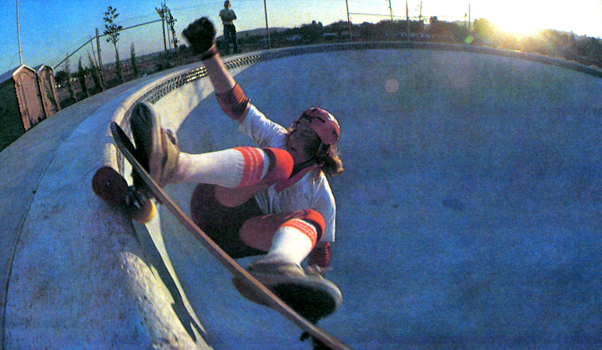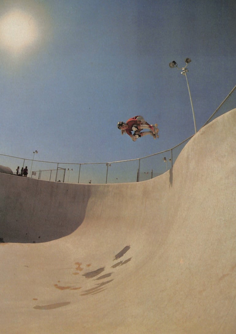 Sin embargo, el skate acabaría sufriendo otra caída casi fatal al acercarse la década de 1980. A medida que dudosas corporaciones ajenas al skateboarding empezaron a infiltrarse en sus competiciones con contratos caballo de troya y sobresaturación de concursos, la popularidad del skate se desvaneció en un hermético grupo de buscadores de libertad que se impusieron en las piscinas vacías de los patios traseros de Estados Unidos. Ya no se construían skateparks, pues los costes de los seguros se dispararon debido a la naturaleza propensa a las lesiones del skate. Y así, ya no aceptado por los padres de SoCal ni por las corporaciones que buscaban la próxima gran moda, el skate se convirtió en la tarjeta de visita de la cultura antisistema y de la creciente escena punk de los años 80.