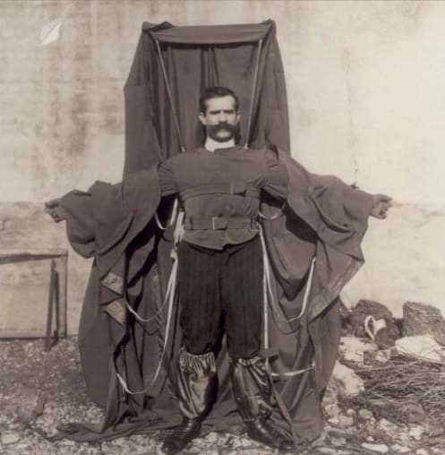 Retrocedemos hasta 1912. Un sastre franco-austríaco llamado Franz Reichelt trabaja sin descanso en el diseño de una prenda revolucionaria: el traje de paracaídas. La idea era simple, desarrollar un traje que permitiera sobrevivir a una caída a los aviadores en caso de que se vieran obligados a dejar su avión en el aire.