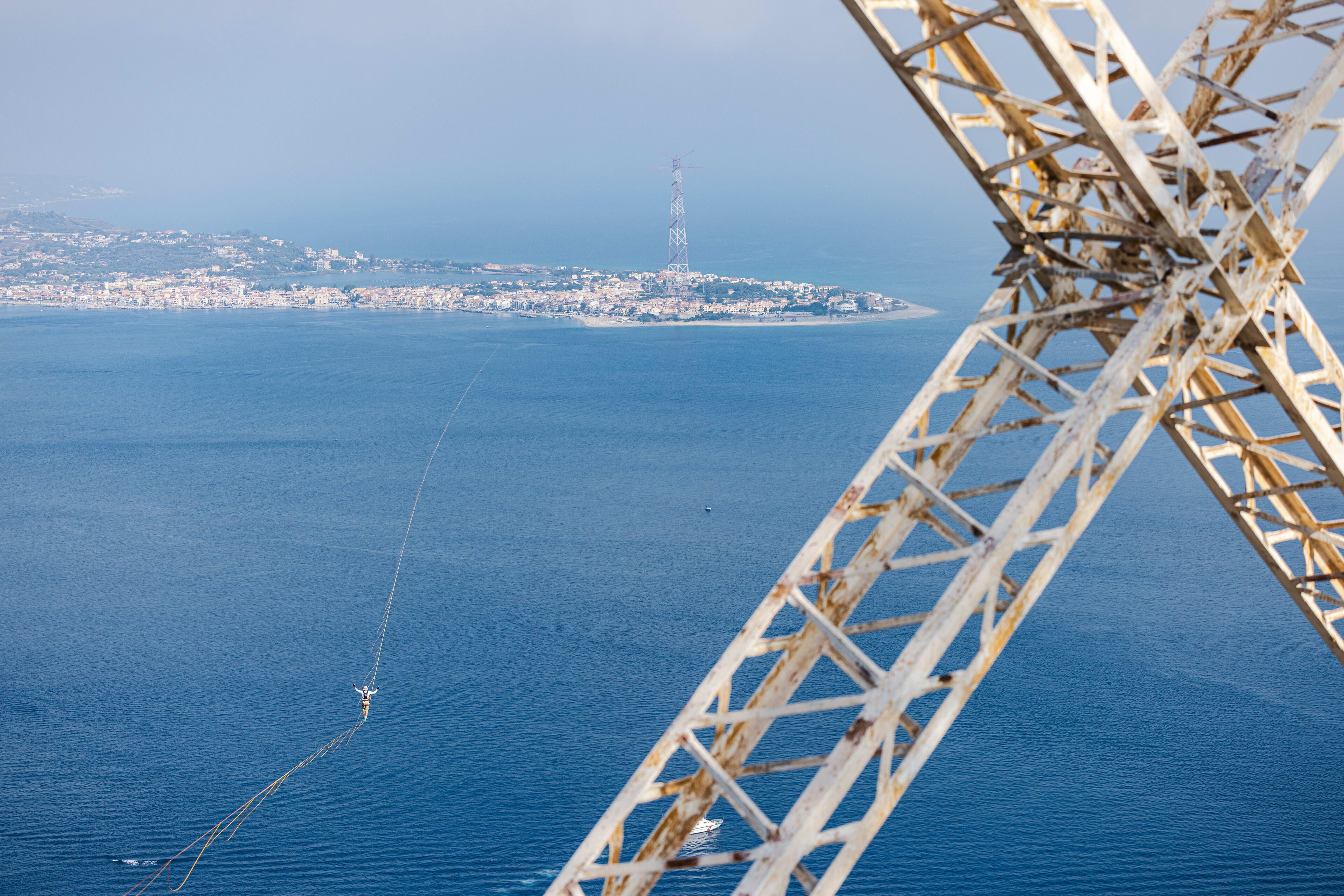 Durante tres horas, Jaan Roose ofreció un impresionante espectáculo de habilidad, concentración y equilibrio, logrando una hazaña sin precedentes. Empezó en Santa Trada, Calabria, y terminó en Torre Faro, Sicilia, convirtiendo esta travesía en una aventura épica. La enorme distancia, las difíciles condiciones meteorológicas y los obstáculos medioambientales aumentaron el desafío. La cinta de slackline se encordó entre viejos postes del tendido eléctrico de distintas alturas, lo que exigía una precisión milimétrica. Esta hazaña única mantuvo a todo el mundo adivinando la hora de inicio hasta el último segundo.