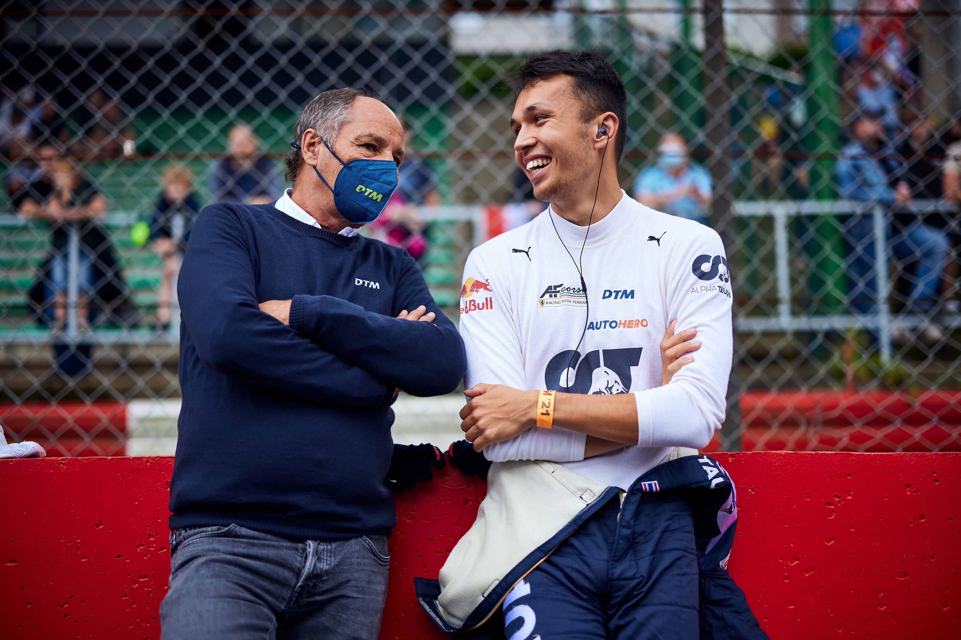 Gerhard Berger y Alexander Albon en conversación durante el DTM de 2021.