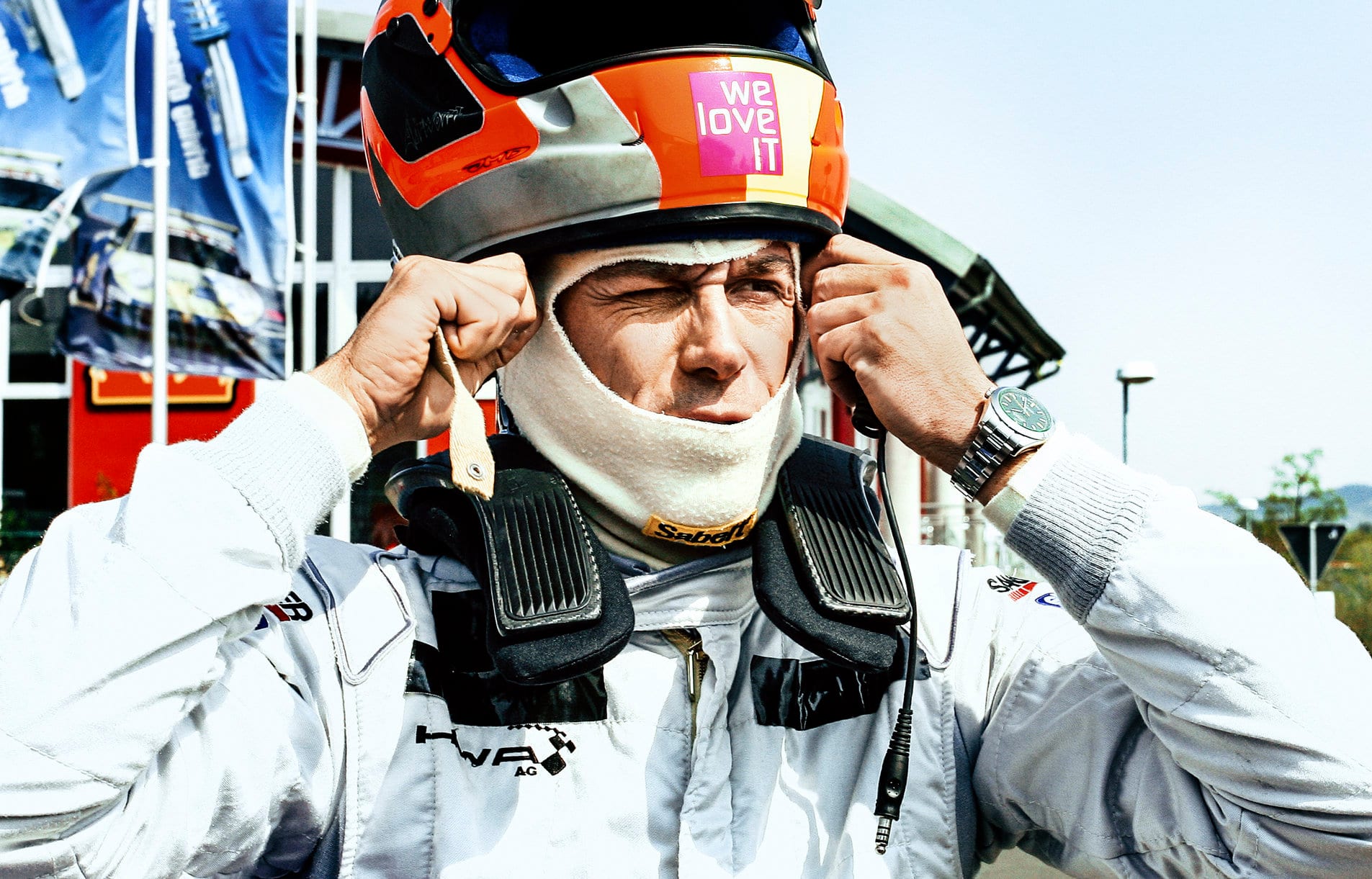 Ponerse el casco para enfrentarse al “infierno verde”. “Siempre se ha dicho que aquí solo pueden ir deprisa los que viven cerca. Vengo conduciendo desde Viena, he practicado un poco y ahora vamos a ver qué ocurre”.