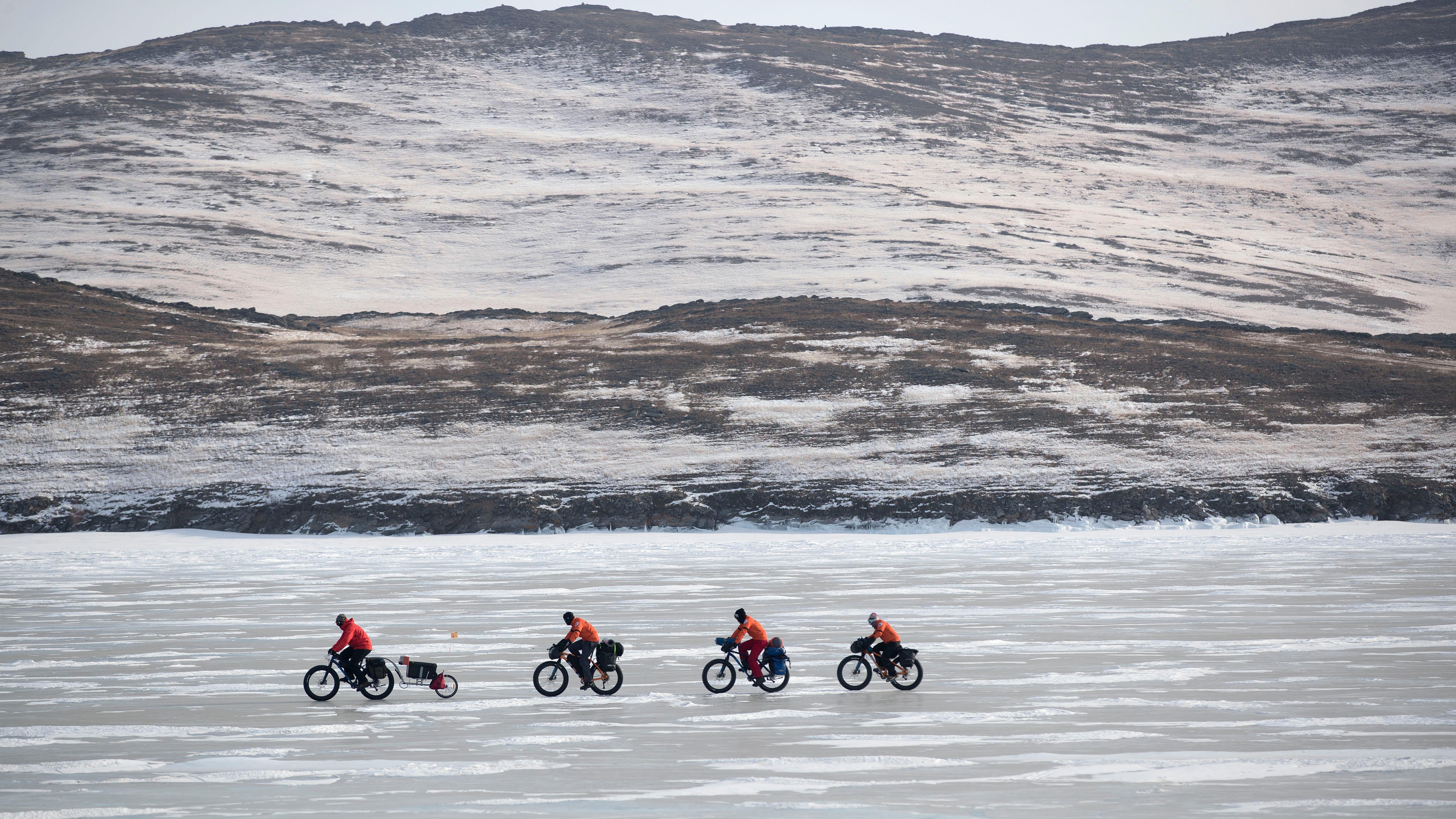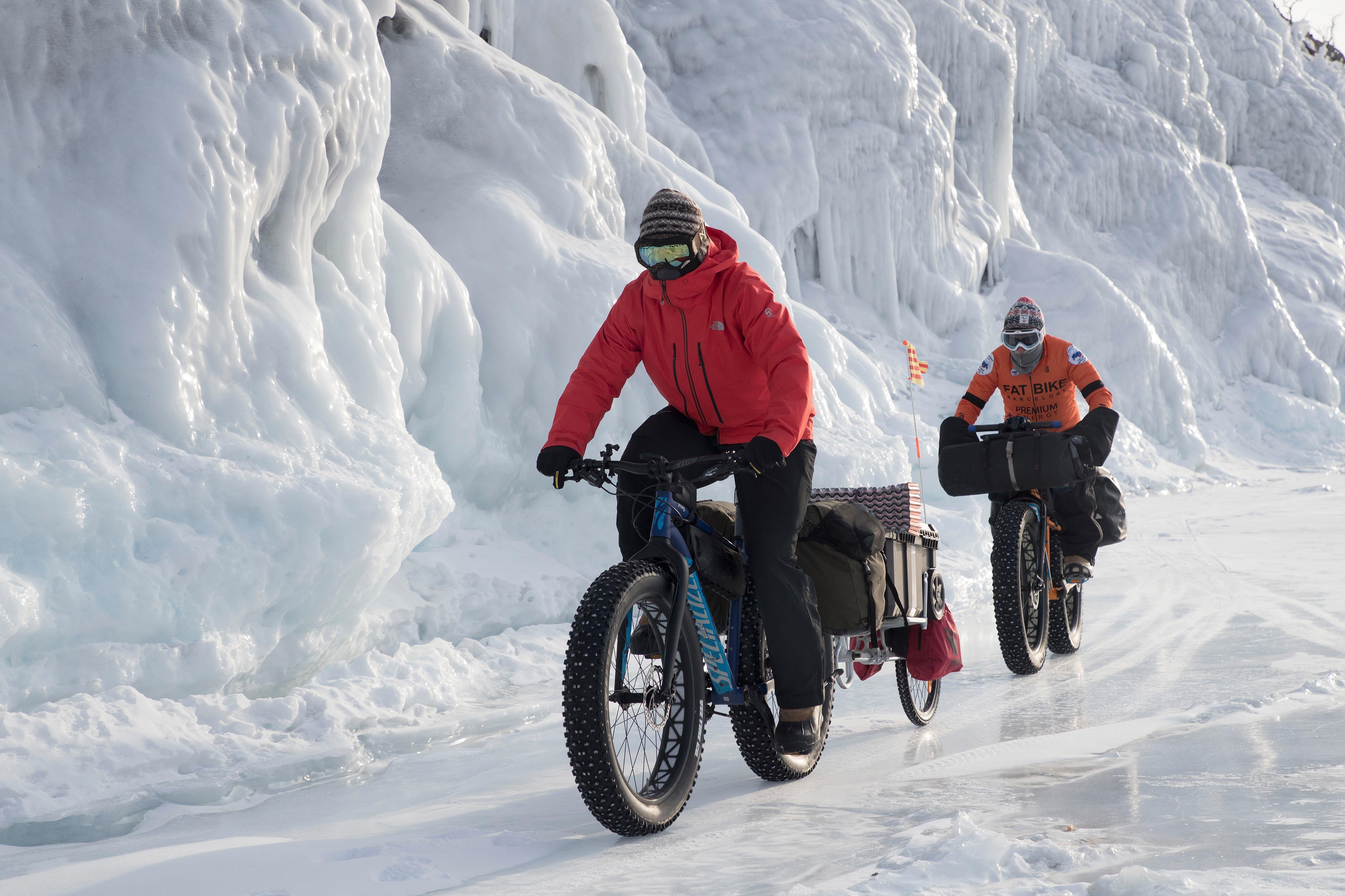 La sensación de pedalear sobre el liso hielo no se puede describir: "Con un pedaleo alegre y con una sonrisa de oreja a oreja comenzamos nuestra travesía hacia la otra orilla del lago. A medida que íbamos avanzando, pequeñas lenguas de nieve que se iban creando sobre el hielo se hacen más y más grandes, lo que ralentiza nuestra marcha"