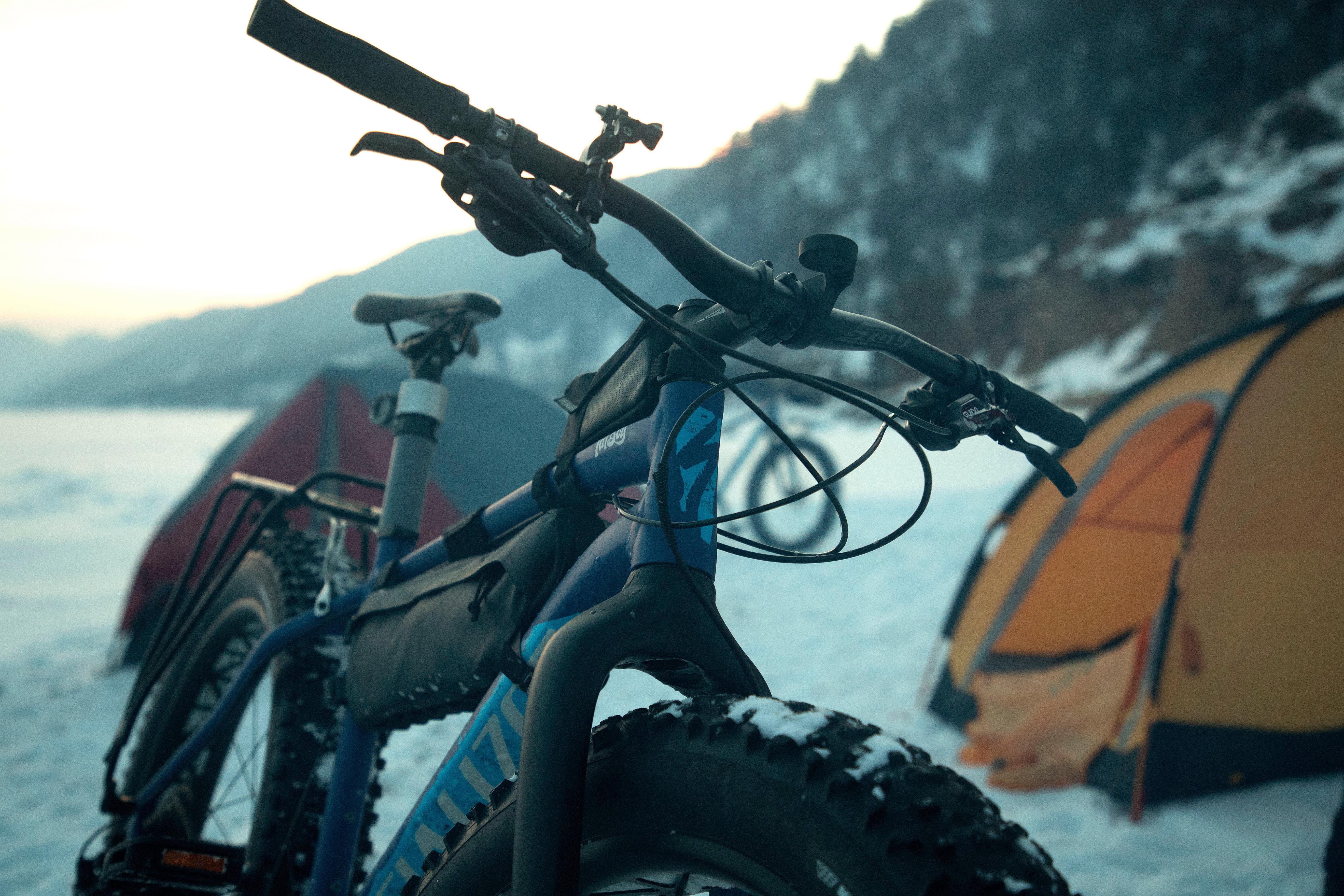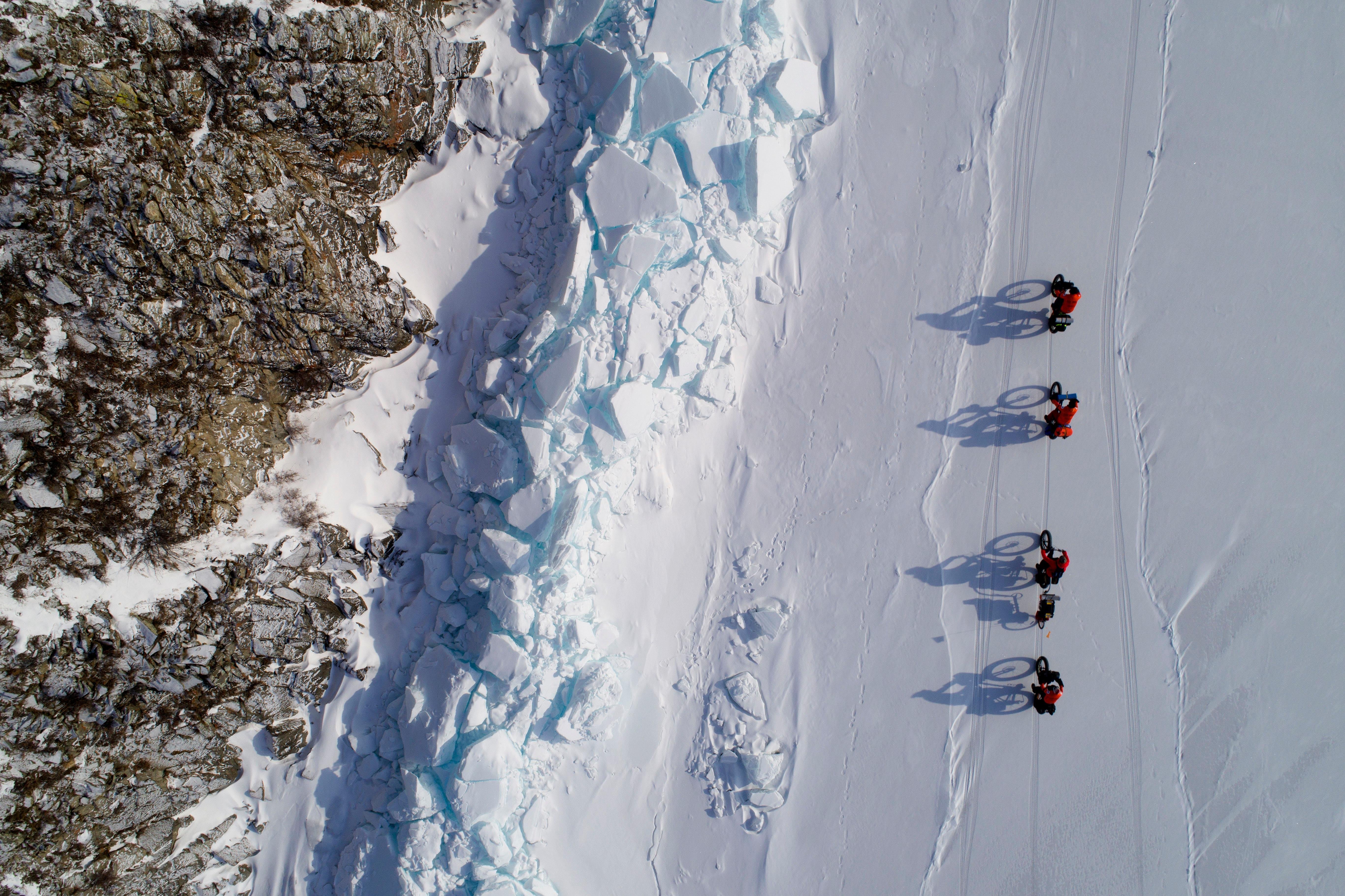 Mountain bike sobre un lago helado