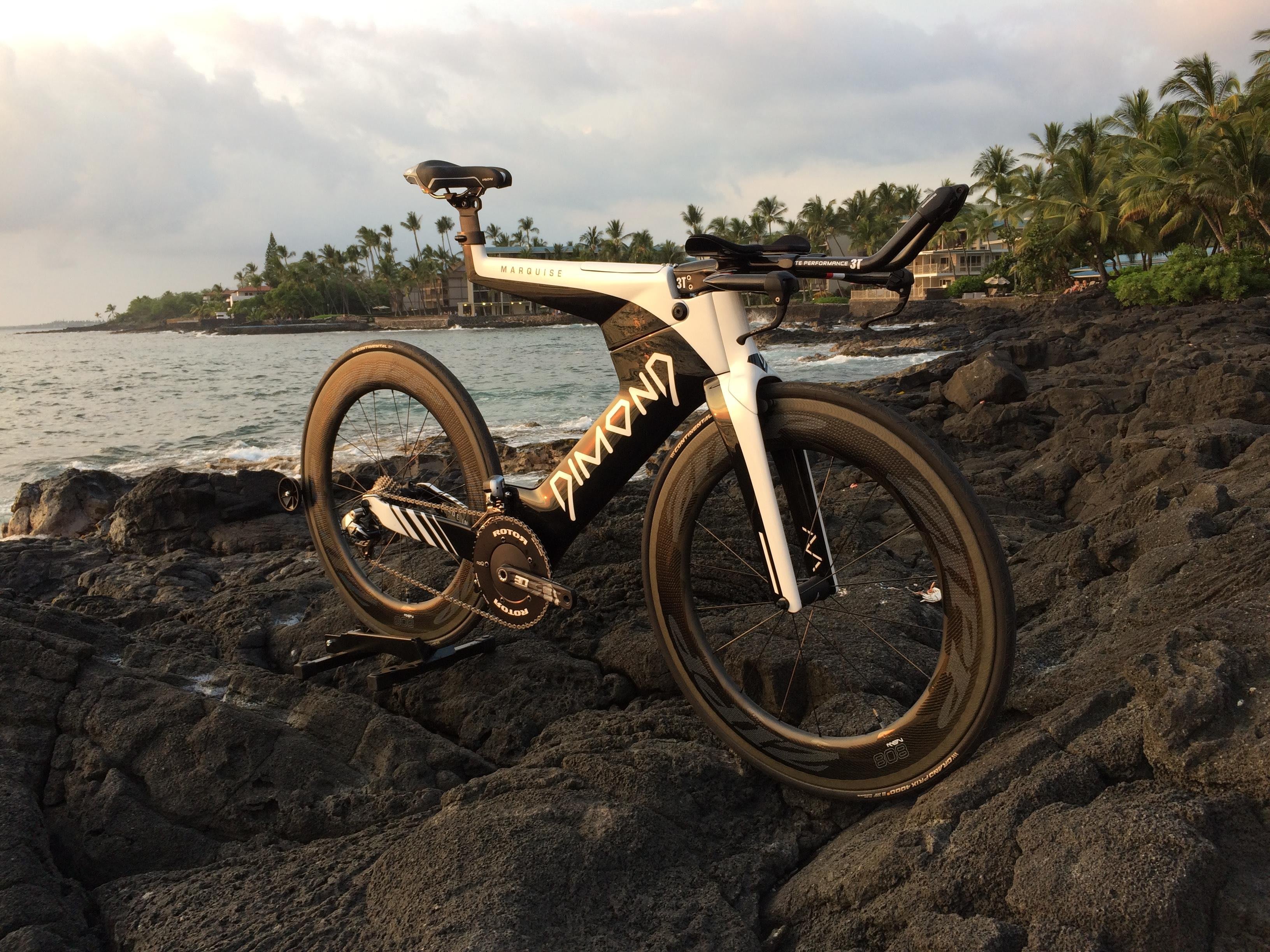 Dimond es una compañía estadounidense. Su último modelo se llama Marquise y cuenta con una impactante imagen. En esta bici se ha eliminado el tubo del asiento. En el 2017 IRONMAN World Championship veremos a Jesse Thomas a sus mandos.