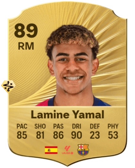 Empezamos simplemente con Lamine Yamal, del Barcelona. Probablemente no necesites que te digamos que es bueno, pero no podemos dejar de incluirlo en la lista, ¿verdad? Ya subcampeón del Balón de Oro y dos veces ganador del Trofeo Raymond Kopa al jugador de menos de 21 años con el mejor rendimiento del mundo, Yamal es sencillamente un fenómeno. Con sólo 18 años, el español parte con una puntuación global de 89, lo que lo convierte en uno de los mejores jugadores del EA FC. Por supuesto, ficharlo va a ser complicado, pero si lo consigues, puedes estar seguro de obtener un diamante que sólo brillará más.