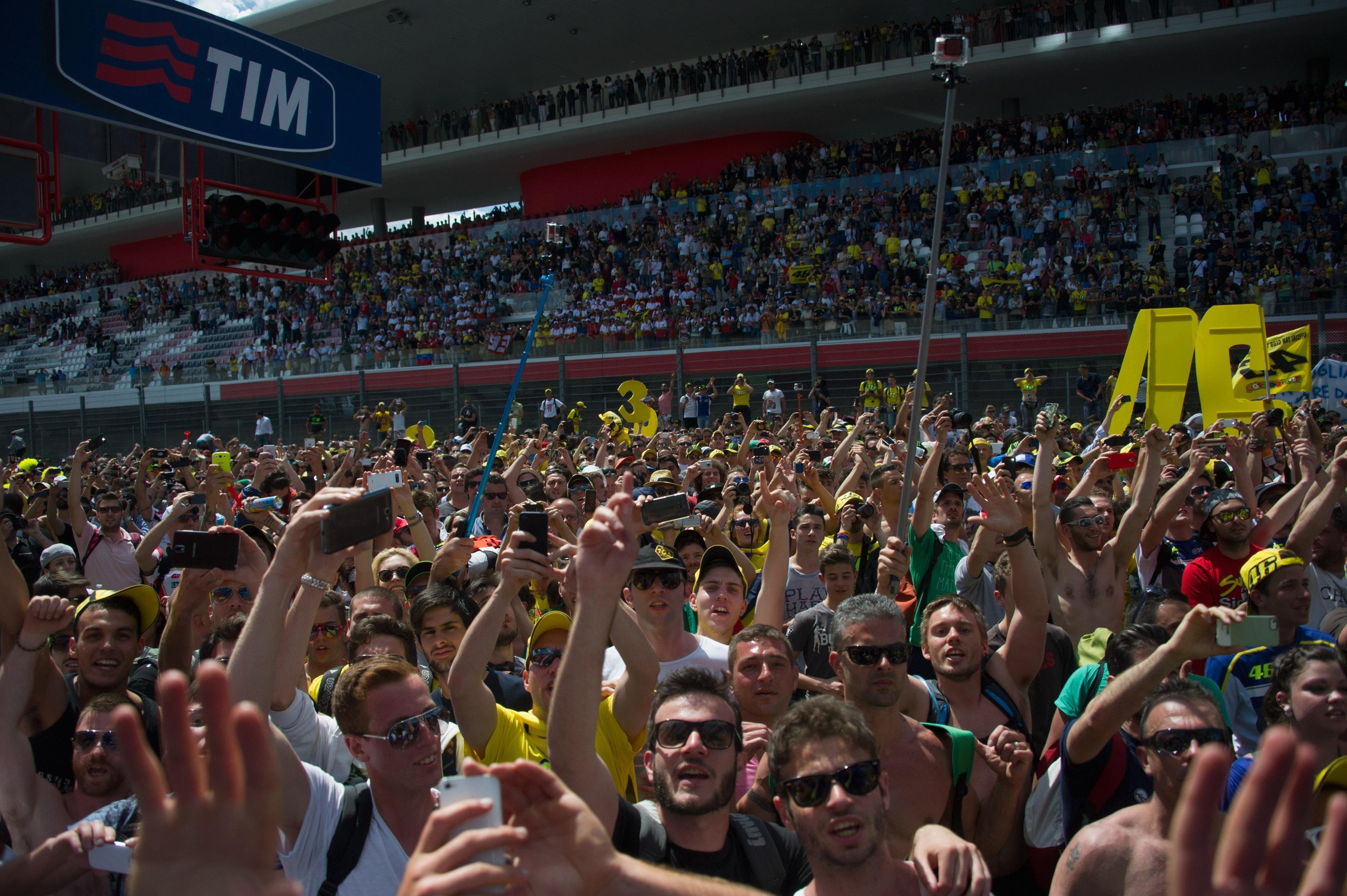 Los fans de todos los circuitos del calendario son una auténtica pasada, eso es cierto. Pero son especialmente activos en Mugello y es precisamente eso lo que convierte al GP de Italia en algo especial. La invasión de la pista nada más acaba la carrera de MotoGP convierte la recta principal en una auténtica marea de gente que va corriendo hacia la zona del podio para ver a Valentino Rossi lo más cerca posible... ¡Independientemente de que haya terminado entre los tres primeros o no!