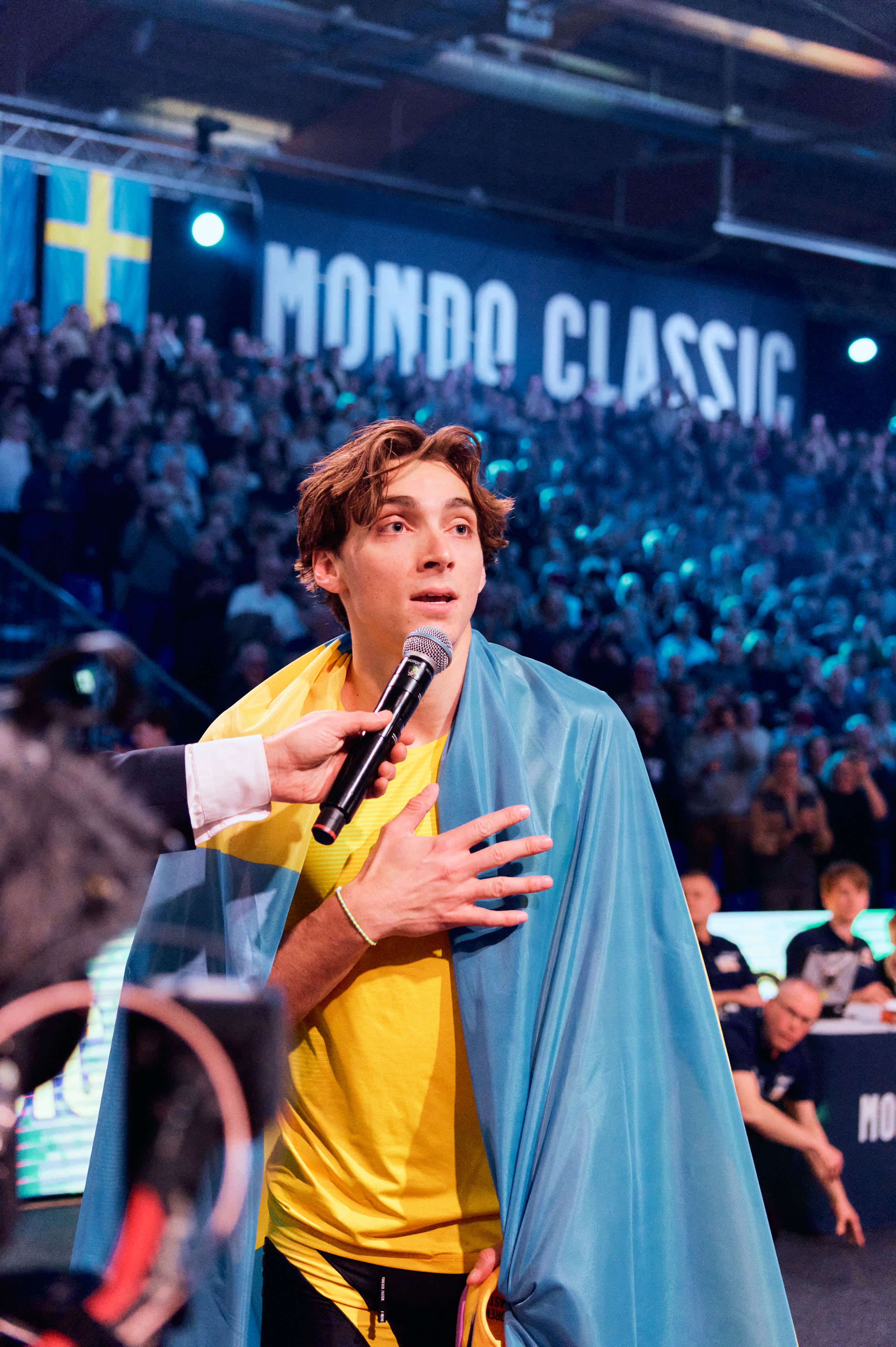 Luego se dirigió al público de su club, el Upsala IF: “Cada vez que salgo a la pista os represento. Me represento a mí, a mi familia y a vosotros. Me siento muy orgulloso de poder hacer esto delante de todos vosotros”.