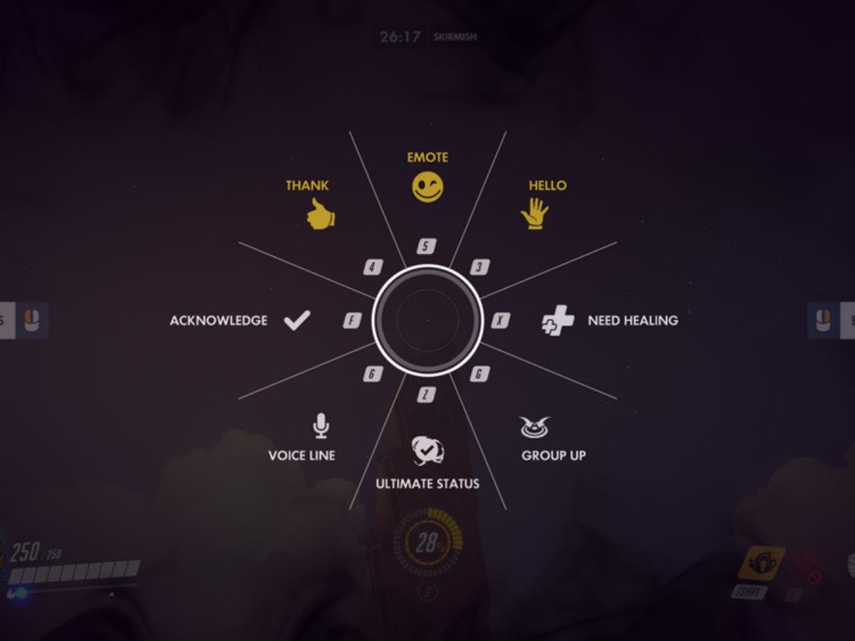 Si no estás dispuesto a participar en el chat de voz, entonces utiliza el menú de comunicación para dar a tus compañeros la información vital que necesitan saber. La rueda permite anticipar nuestras intenciones de tomar el punto o pedir por un poco de sanación. No es ni la mitad de la mitad de lo que puede llegar a ofrecer el chat de voz, pero puede marcar la diferencia si se usa de manera eficaz. Vete anunciado cómo va tu habilidad definitiva, pues puede hacer que otros compañeros se guarden la suya para lanzar todas juntas en un combo de destrucción.