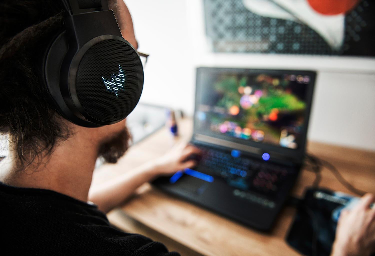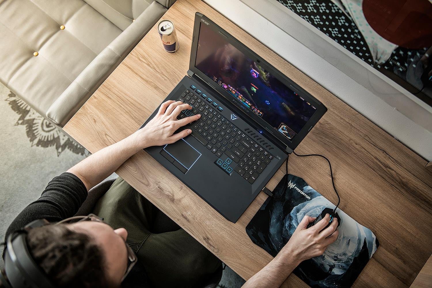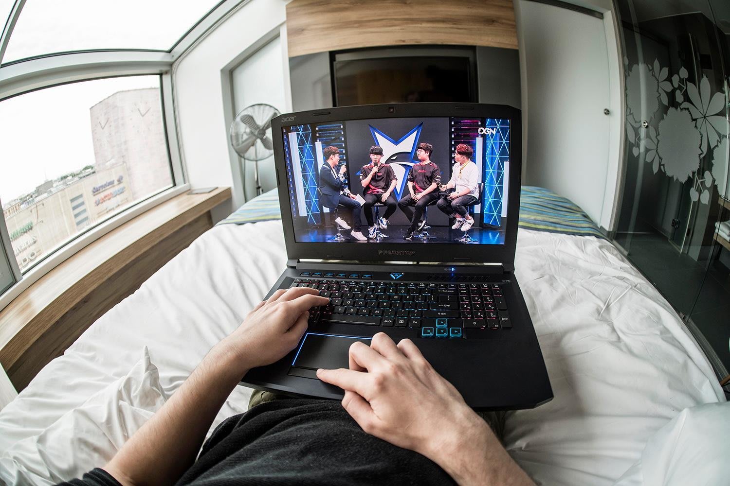 En casa, el Predator Helios 500 cuenta con dos altavoces estéreo incorporados y un subwoofer para graves, mientras que la tecnología TrueHarmony 3d Soundscape ofrece una reproducción de sonido más auténtica, algo vital si quieres evitar un wallbang en dust2. En los desplazamientos - como en el caso de Nervarien, relajándose en el exclusivo Puro Hotel Kraków- tú puedes obtener los mismos beneficios simplemente conectando los auriculares para gaming, Predator Galea 500. Nervarien es capaz de mantenerse al día con sus compañeros de equipo en League, gracias a su confortable estructura y su micrófono claro como el agua, y cuando el juego termina, simplemente se pone al día con lo último de la LCS.