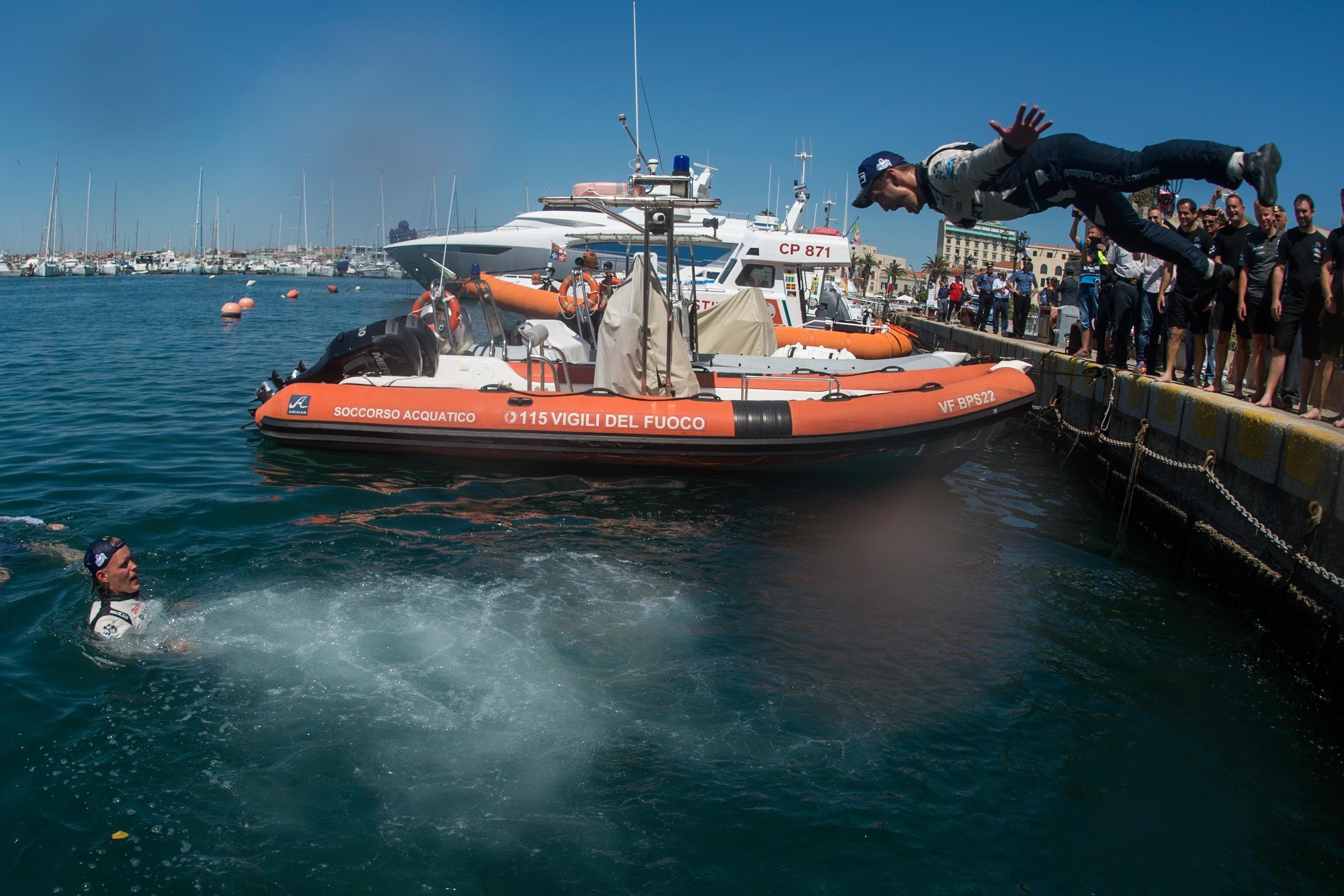 Ott Tänak y su copiloto Martin Järveoja se tiraron al mar para celebrar la victoria. Además era una manera de recordar el espectacular accidente que tuvieron en el agua en México hace dos años.