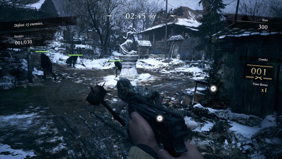 La mayoría de los enemigos de Resident Evil Village tienen ataques Stop/Start. Así que hay que encontrar algún tipo de ritmo para mantener la distancia entre los ataques o los disparos bien dirigidos. Mantenerse en movimiento es también la única manera de atraer a los enemigos hacia los peligros del entorno y recoger objetos y munición. Por cierto, presta atención a los objetos que puedes mover para bloquear o ralentizar a los enemigos.