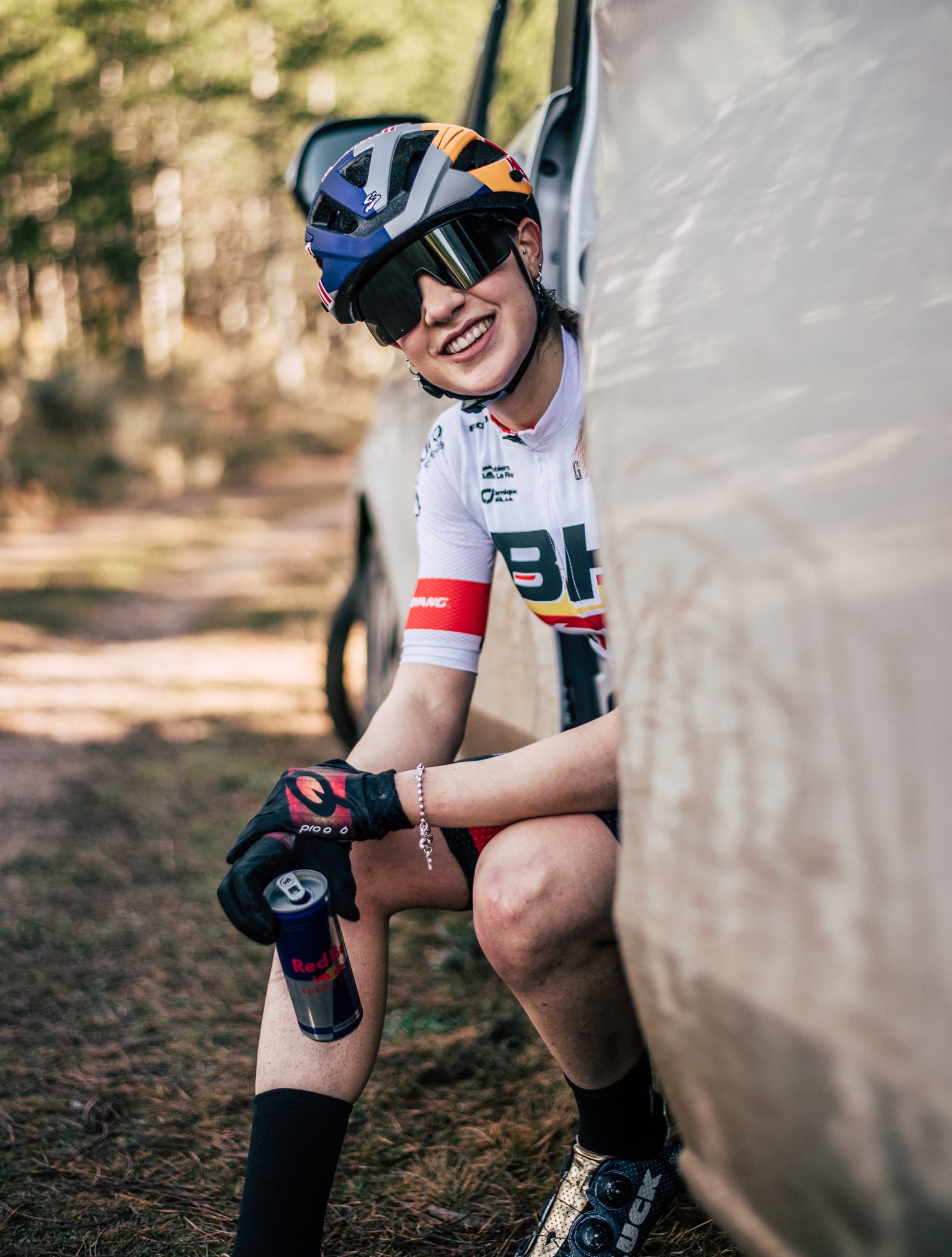 Tal es su dominio de los diferente escenarios que más de uno ya le ha sugerido pasarse al enduro. “Mucha gente me lo dice. Este año con la Selección Española hemos estado de concentración, dedicando unos días a la tecnificación en un bike park muy guapo, La Fenasosa, en la zona de Alicante. A la semana siguiente bajamos con las bicis eléctricas a darle un poquito al enduro y la verdad es que lo pasé genial. Lo disfruto mucho como método de entrenamiento pero… no, a mí lo que me gusta es correr en cross country, no en enduro”, comenta antes de aclarar que “la gente tiene un concepto muy confuso de la bici eléctrica. No es una moto. Se trata de una ayuda al pedaleo y, si no das pedales, no funciona. Tiene sus modos, evidentemente, más rápidos y más lentos, pero sin dar pedales la bici no va. En nuestro caso, la uso en días de mucho frío o lluvia, pero sobre todo después del gimnasio; nos viene muy bien para practicar técnica y para que el cuerpo, después de haber trabajado duro, no se sature demasiado. La opción de poder combinarlo y no tener que salir con la convencional, hacer cinco bajadas en lugar de las dos que harías con la normal, es positivo. Son totalmente compatibles la eléctrica y la de competición”.